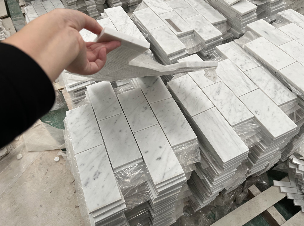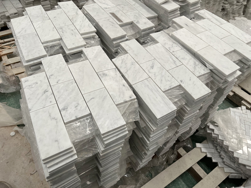 天然大理石马赛克墙贴卡拉拉白小垒砖工字拼浴室卫生间石材背景墙