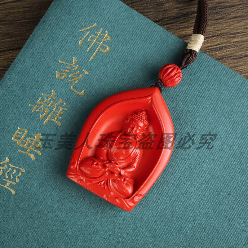 天然原矿红朱砂阿弥陀佛吊坠牌子