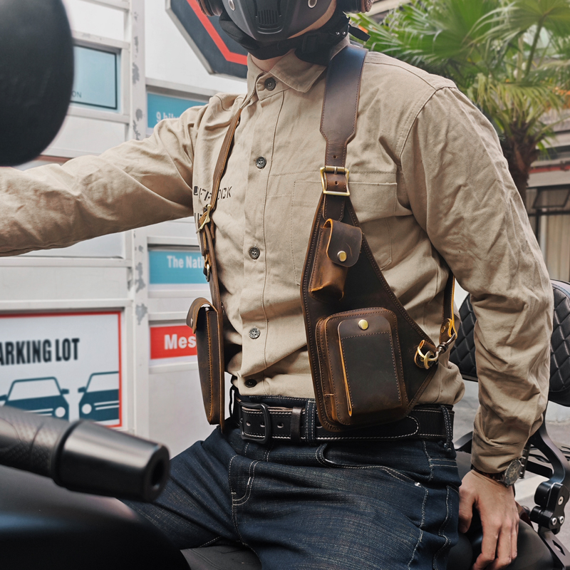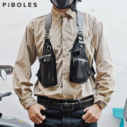 头层牛皮复古工装马甲包真皮背带腋下挎包男女蒸汽朋克机能机车包