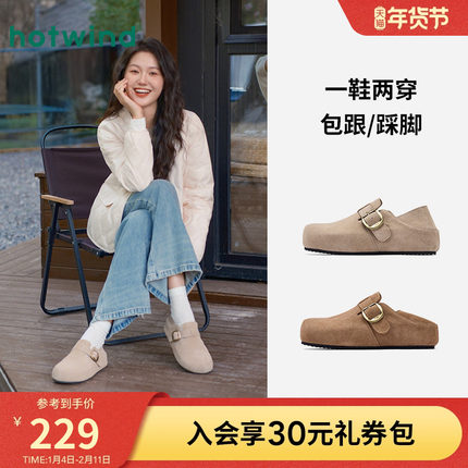 热风包头勃肯鞋女鞋2025年秋季新款女士舒适两穿休闲鞋外穿单鞋