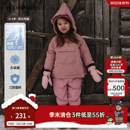 TeenieWeenie Kids小熊童装秋季男女宝刺绣连帽三防羽绒服羽绒裤
