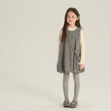 女童韩版甜美蝴蝶结背心裙中大童冬款礼服新儿童毛呢花苞裙连衣裙