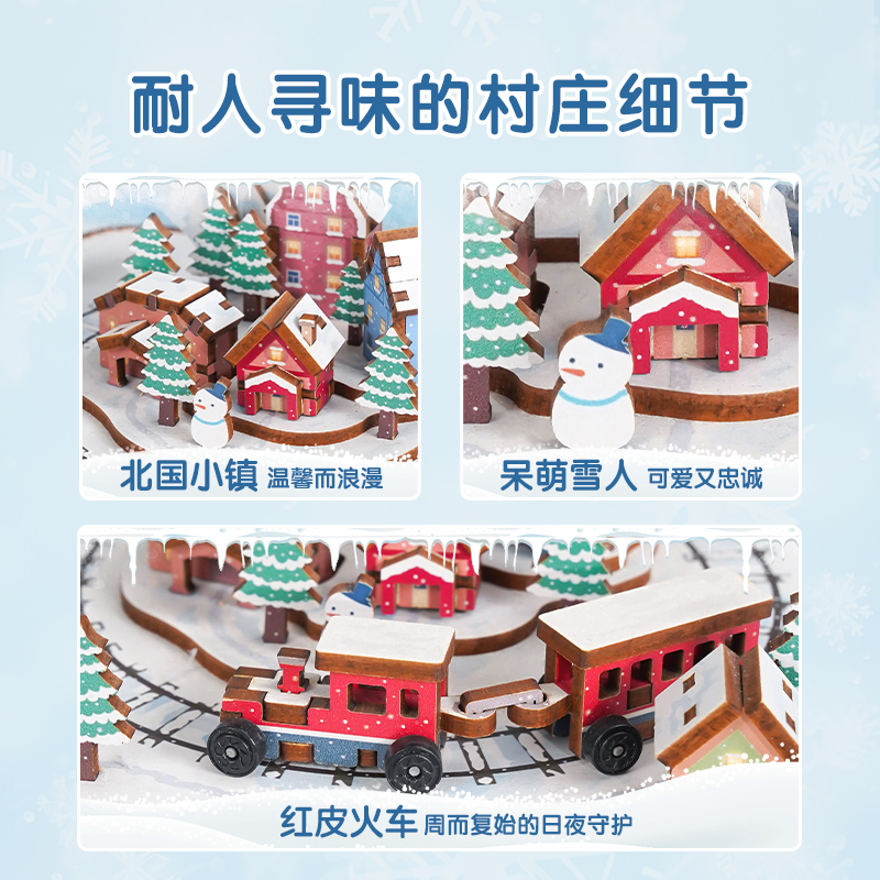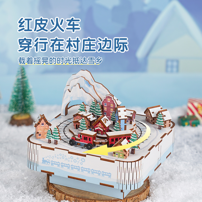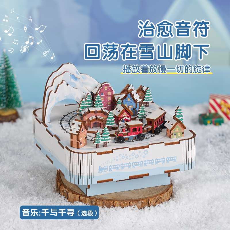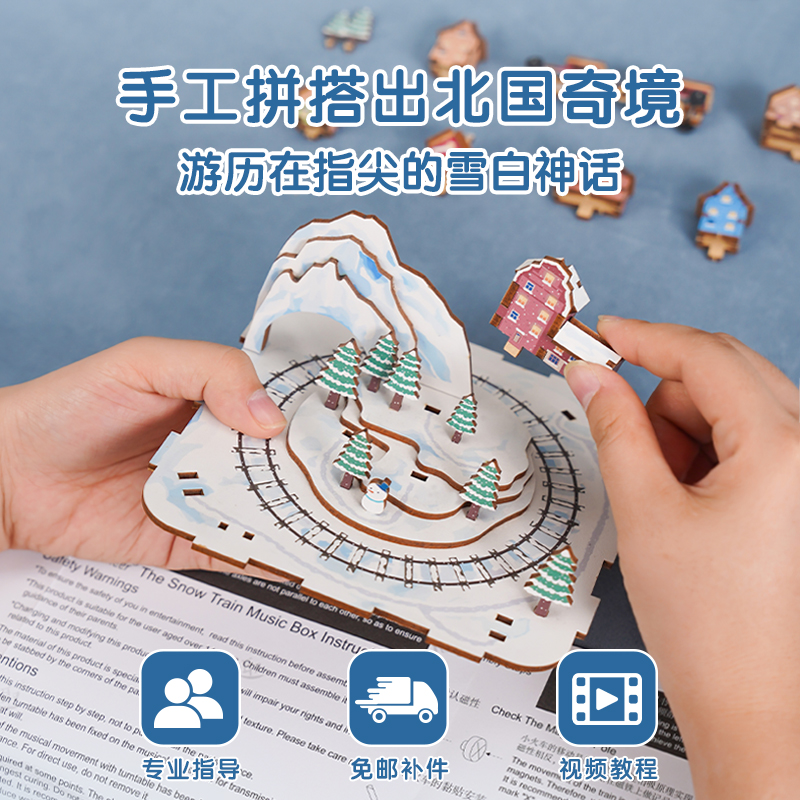 同趣官方正品八音盒北国列车手工diy拼装积木玩具音乐盒生日礼物