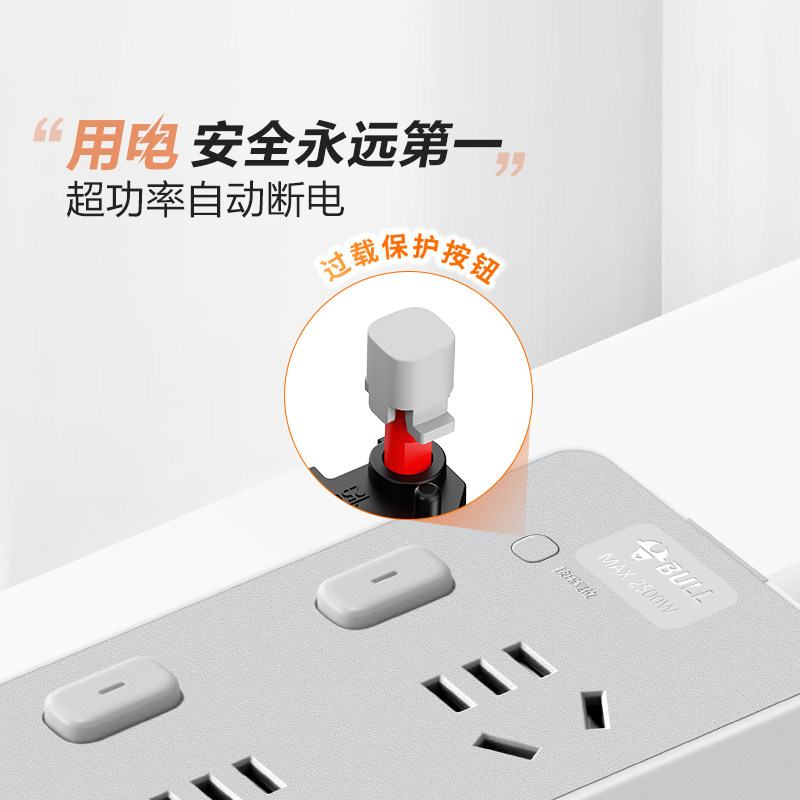 公牛插座分控独立多功能多开关办公家用插板接线板拖线板插排排插