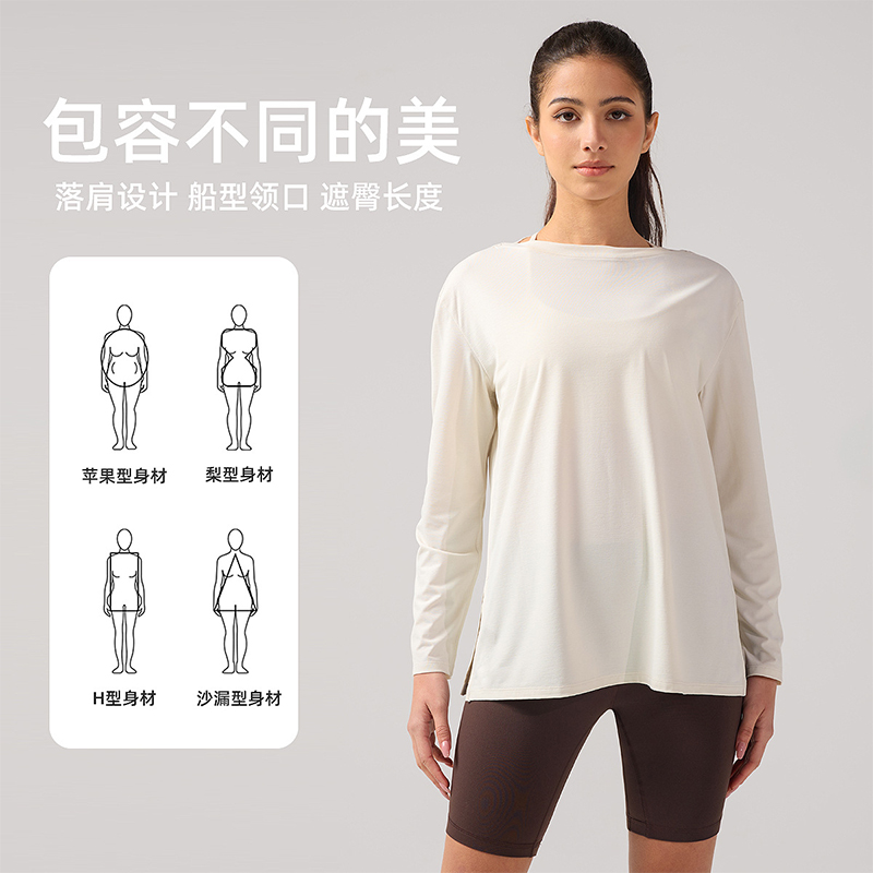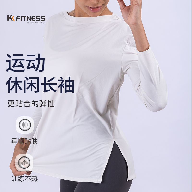kk fitness瑜伽服长袖女运动上衣宽松罩衫速干裸感运动休闲健身衣