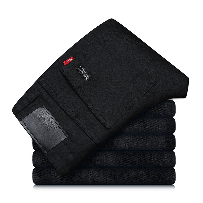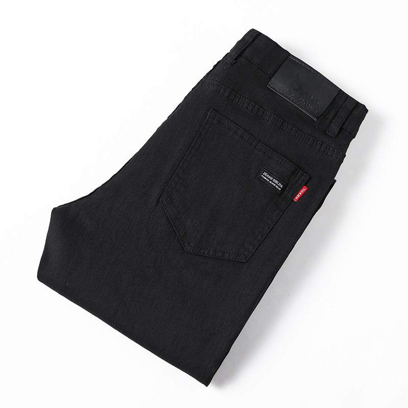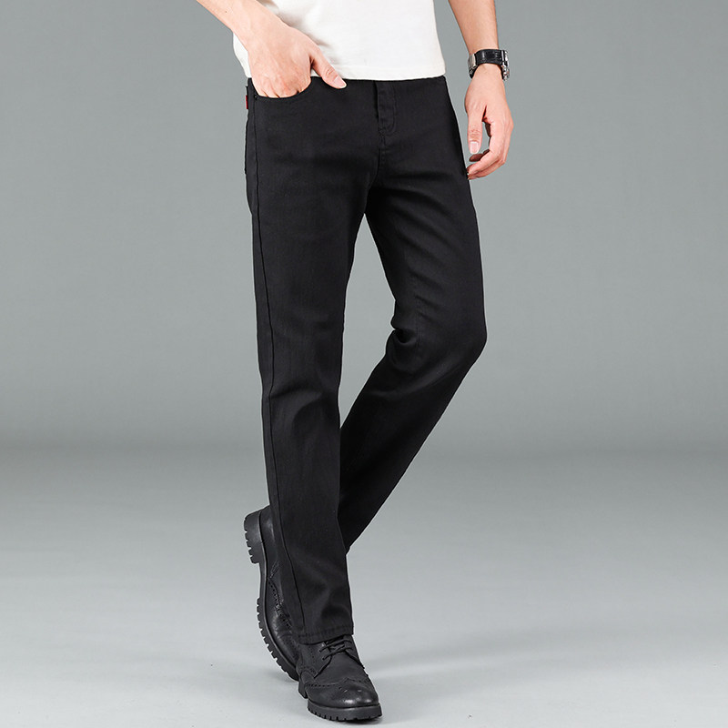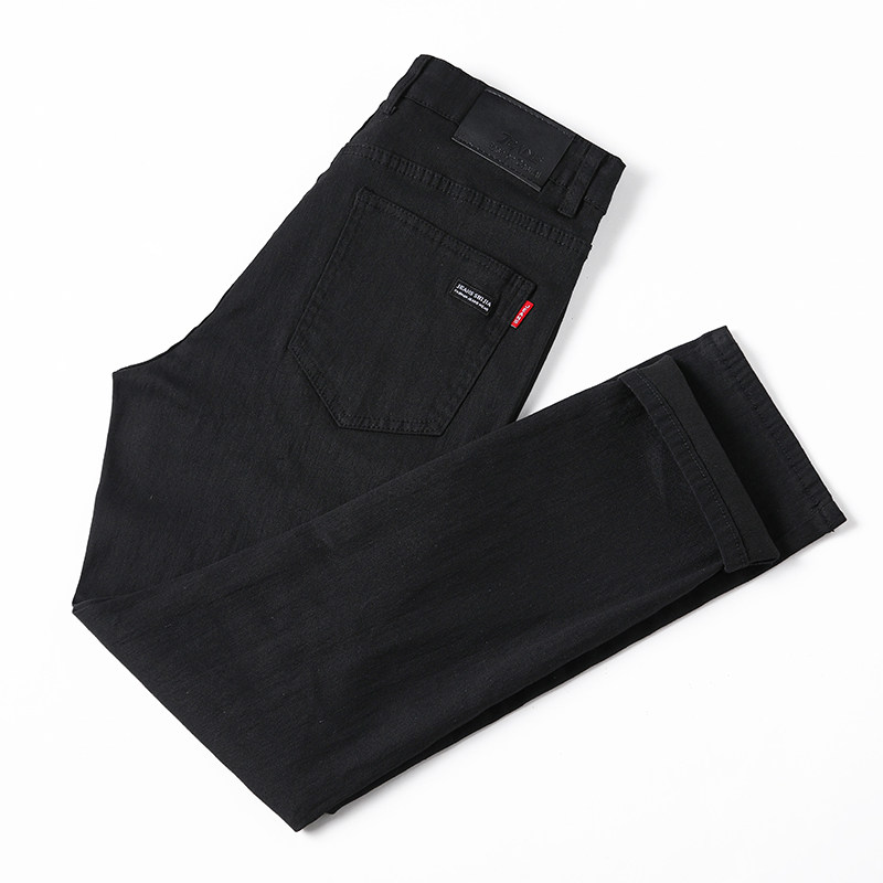 秋季黑色牛仔裤男商务薄款欧货潮流弹力修身青年休闲长裤宽松直筒