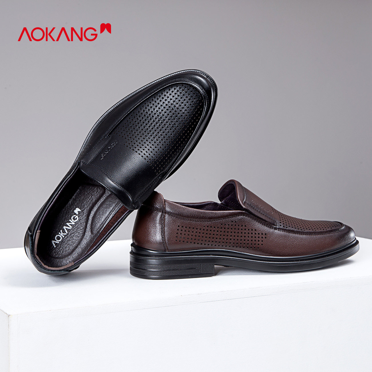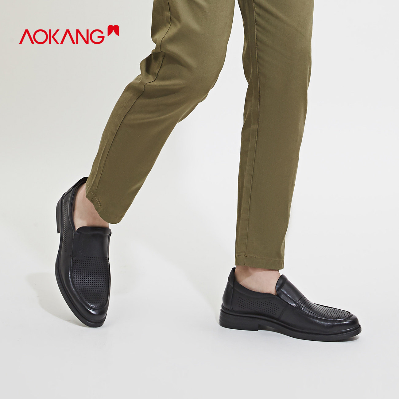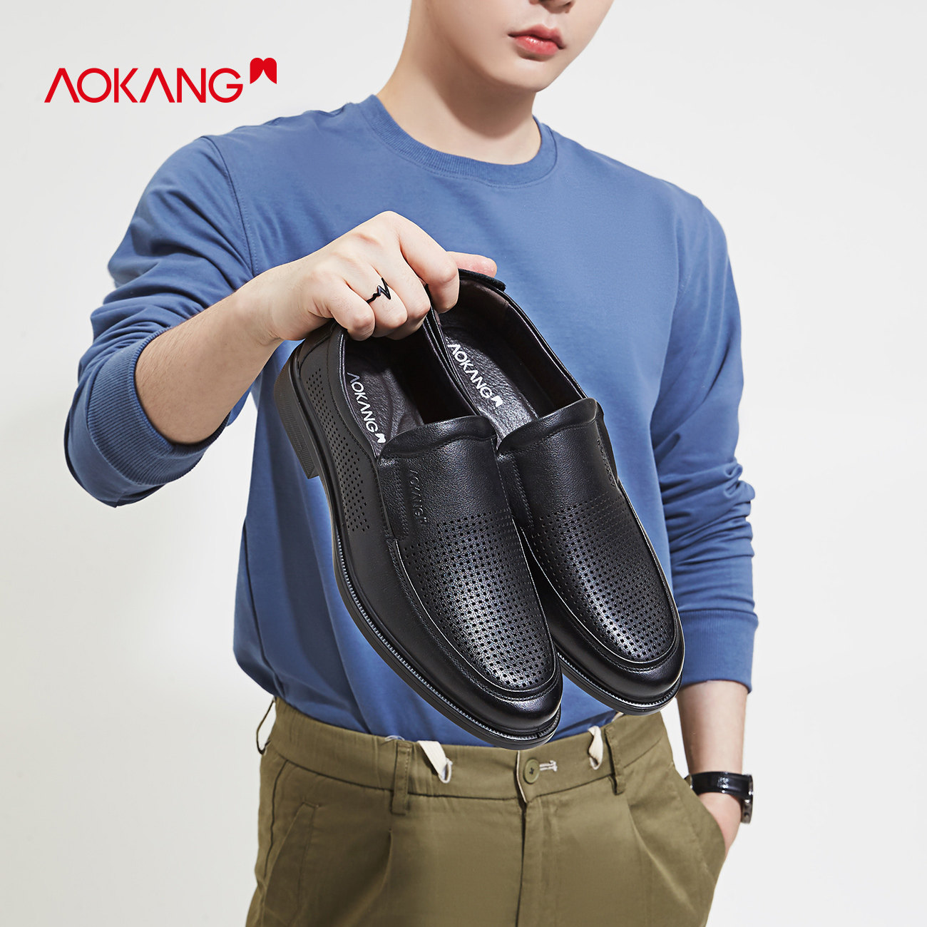 奥康皮鞋夏季新款男士真皮镂空懒人休闲鞋新款舒适软底透气一脚蹬