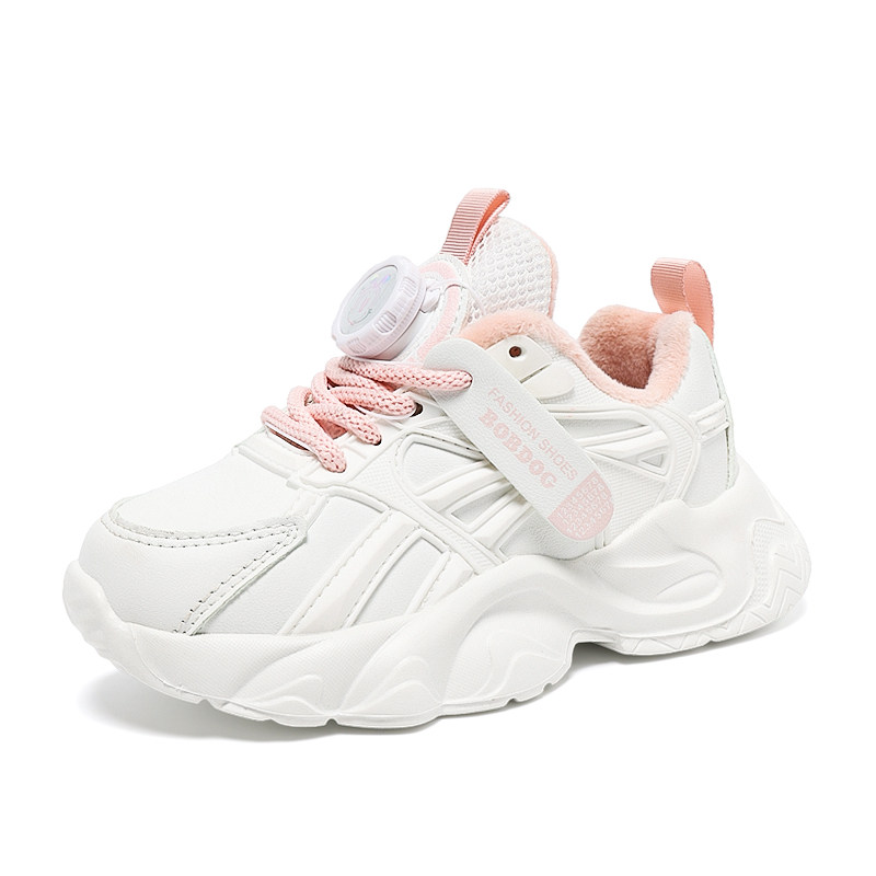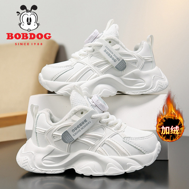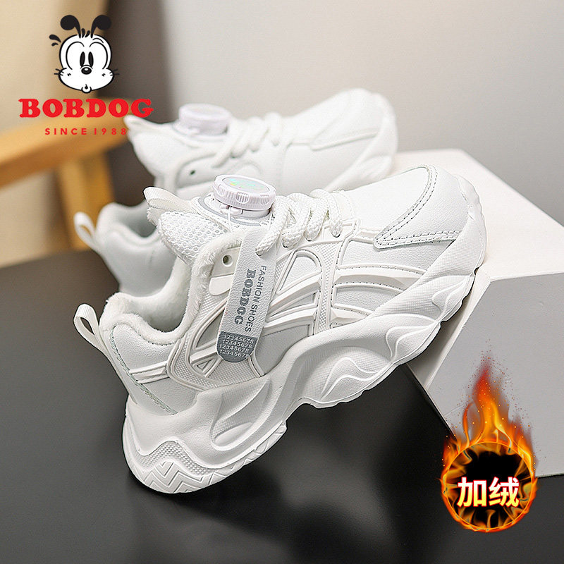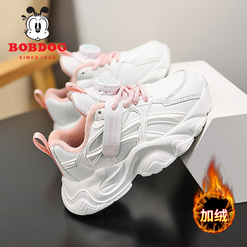 巴布豆女童鞋二棉鞋2025新款冬季加绒保暖皮面儿童运动小白鞋女孩