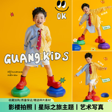 儿童摄影服装星际之旅拼色衬衫多巴胺主题男童影楼拍照道具写真照