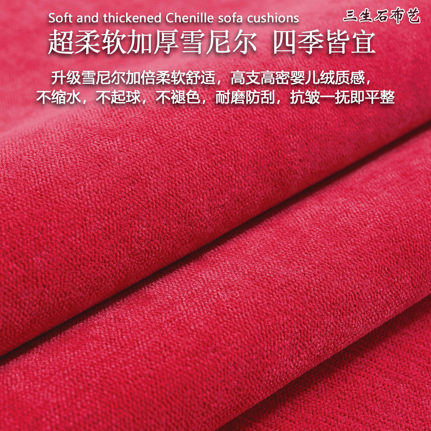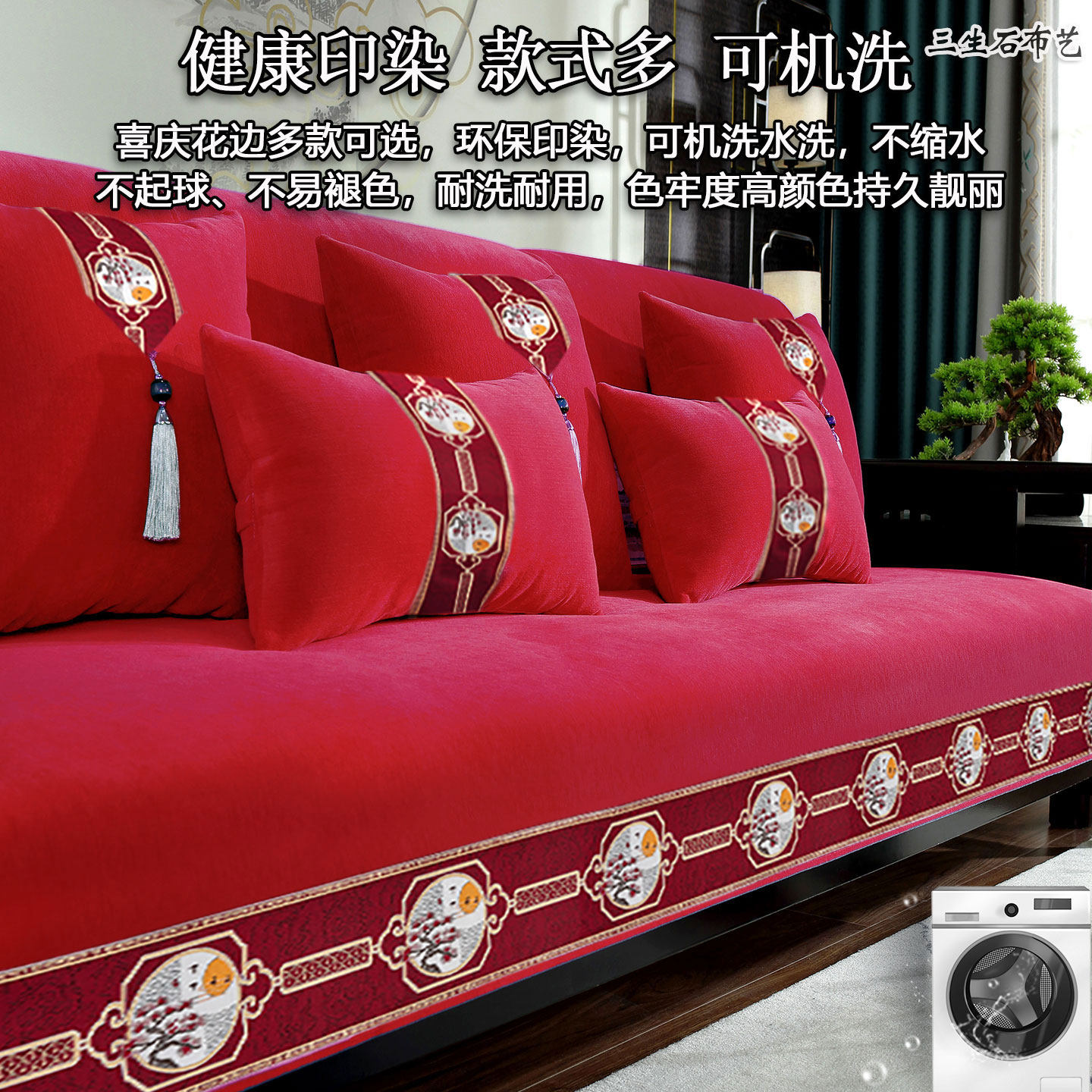 结婚红色沙发垫雪尼尔防滑四季用