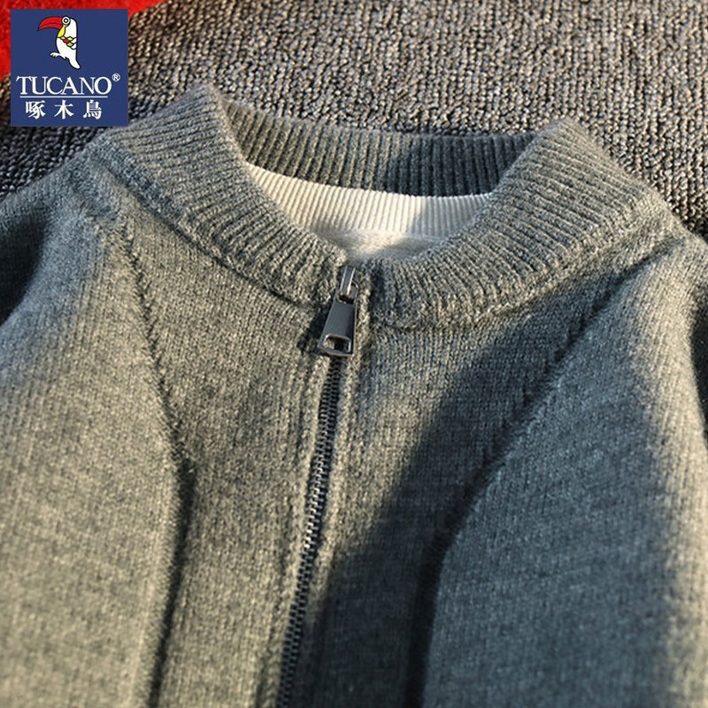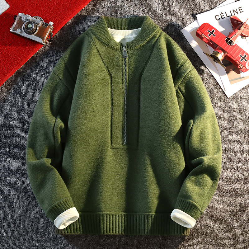 啄木鸟2025新款纯色立领毛衣男冬季加厚针织衫潮牌宽松保暖打底衫