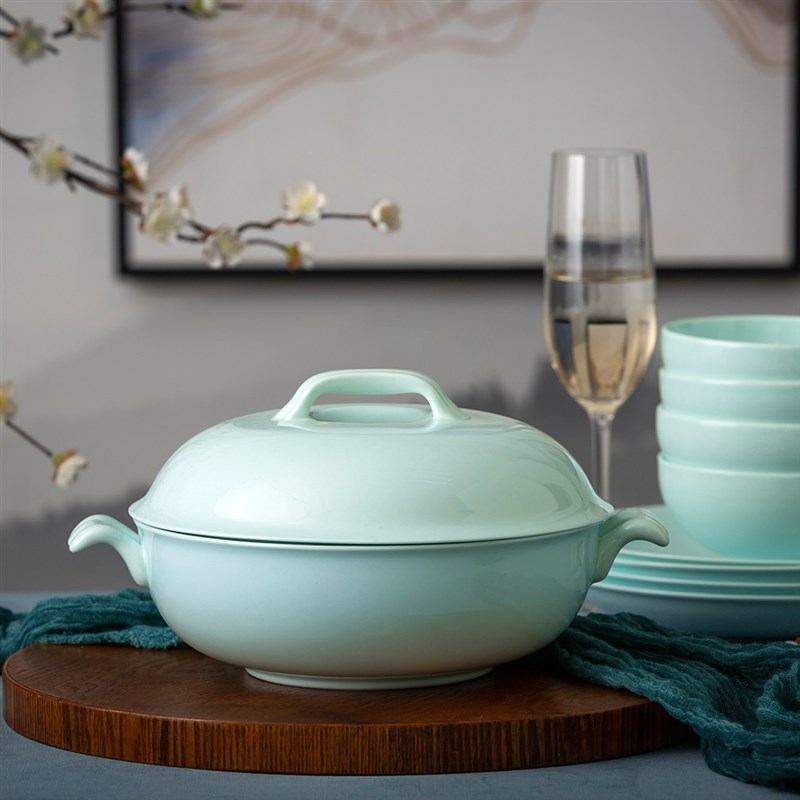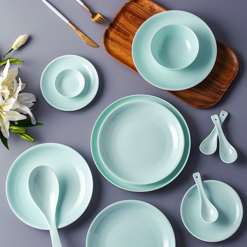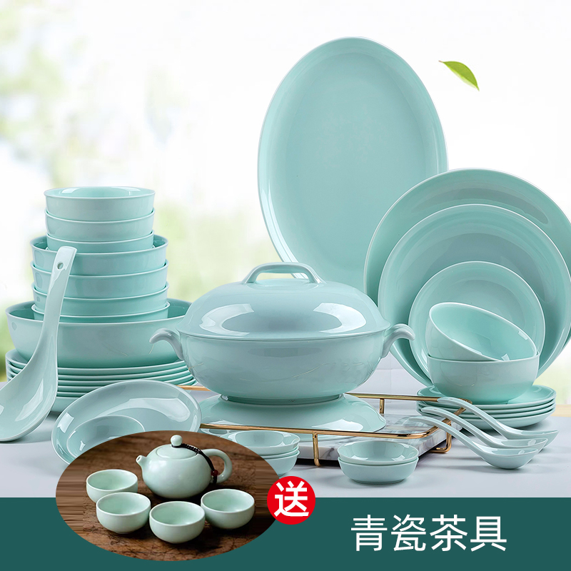 青瓷餐具套装景德镇碗盘家用碗碟简约中式釉下陶瓷盘子碗骨瓷餐具