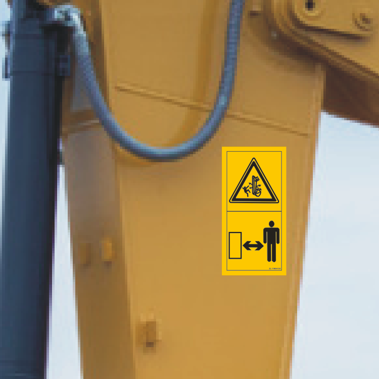 挖掘机大臂配重后屁股危险警示标