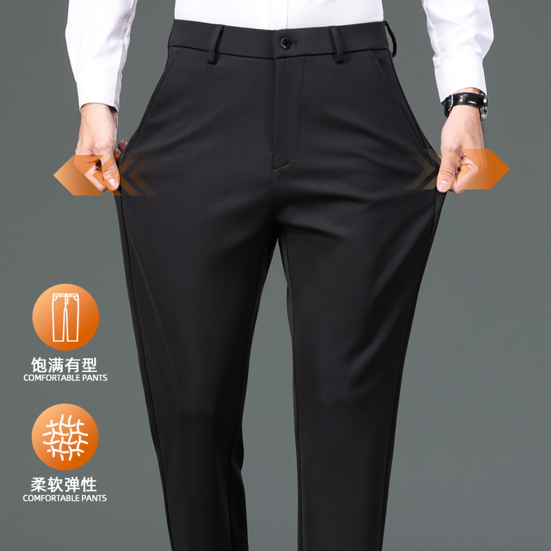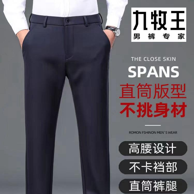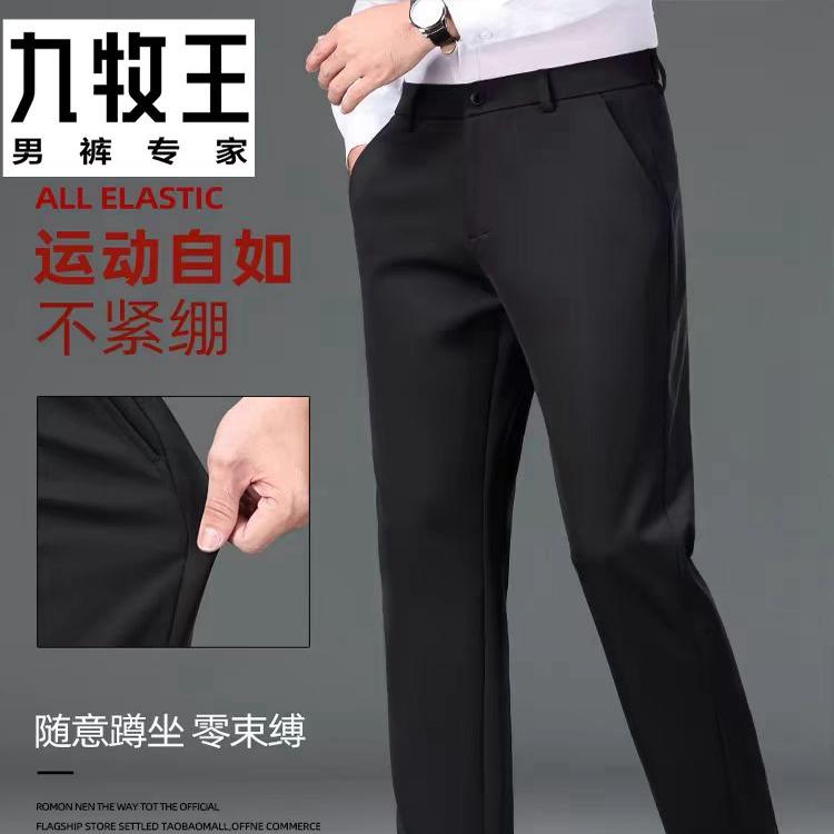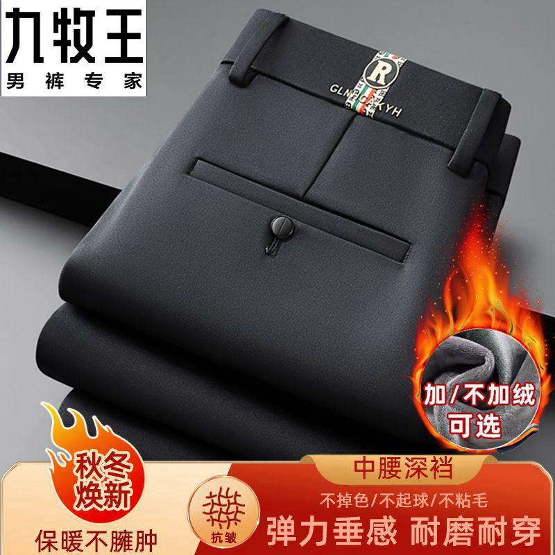 九牧王小黑裤休闲裤男加绒加厚保暖长裤秋冬中年弹力免烫直筒长款