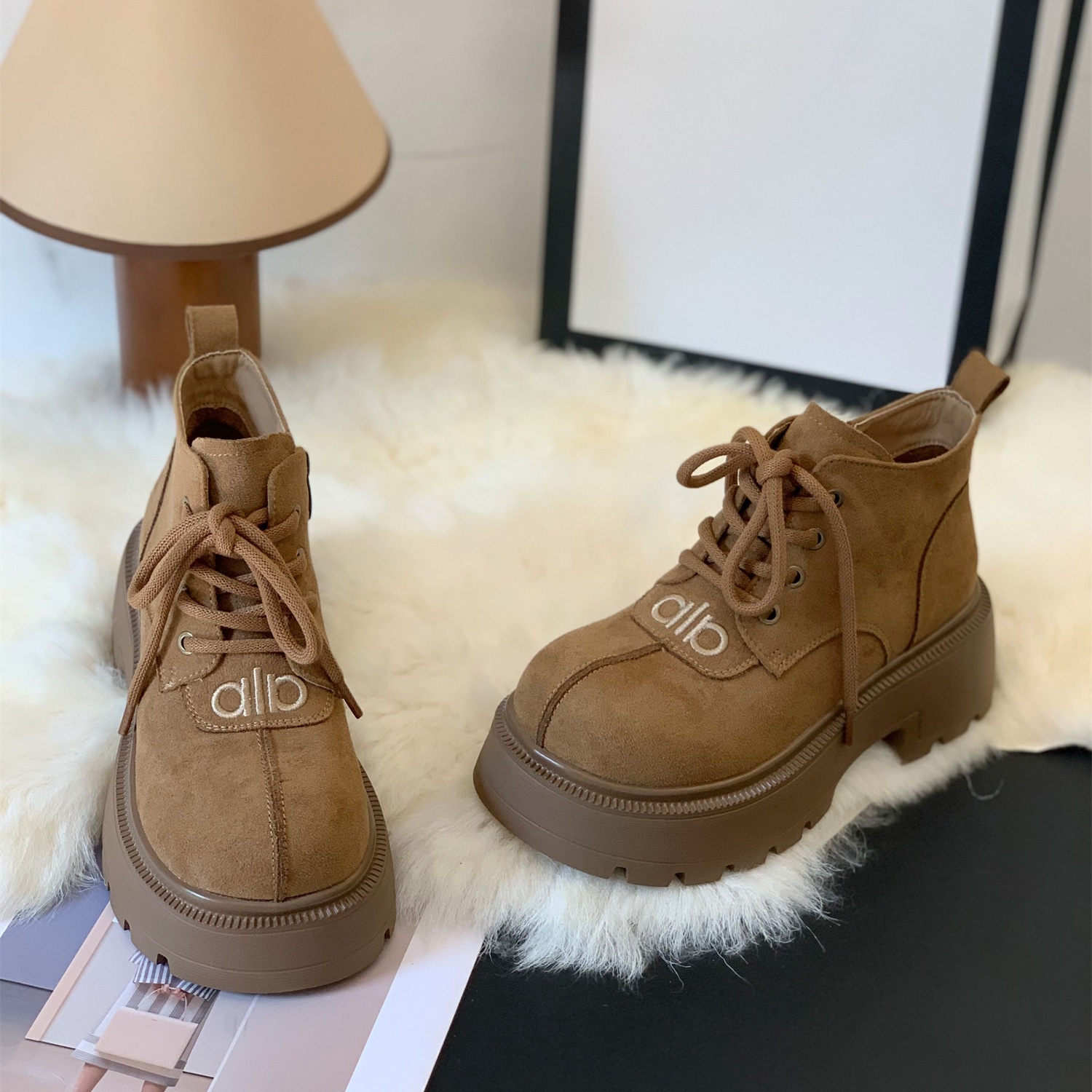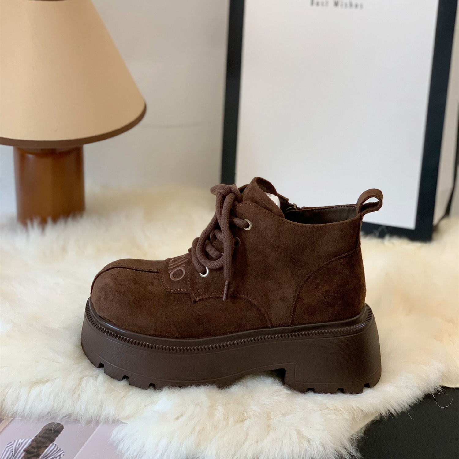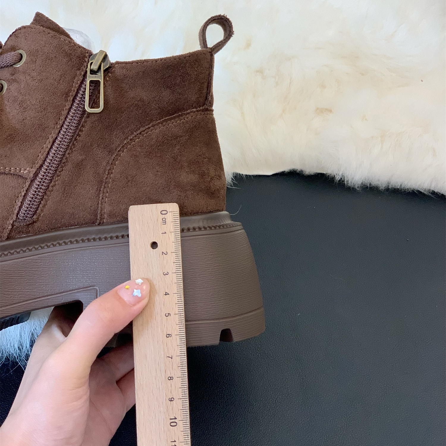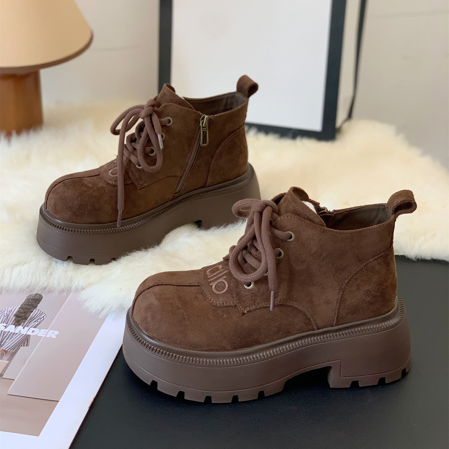 法式厚底增高前系带侧拉链复古绒面拼接马丁靴2025秋冬超火工装靴