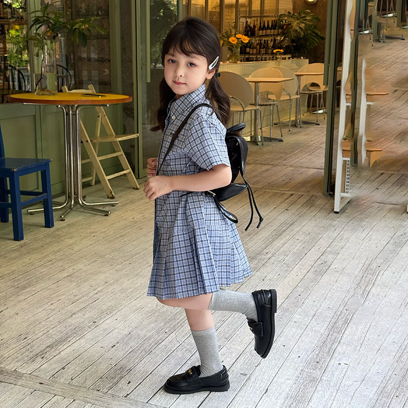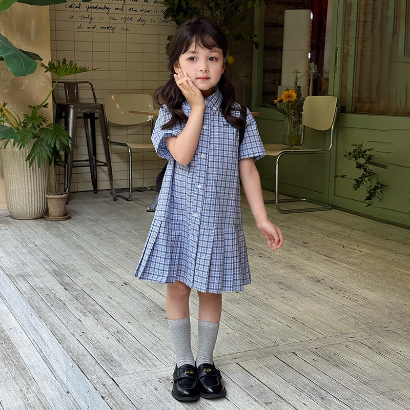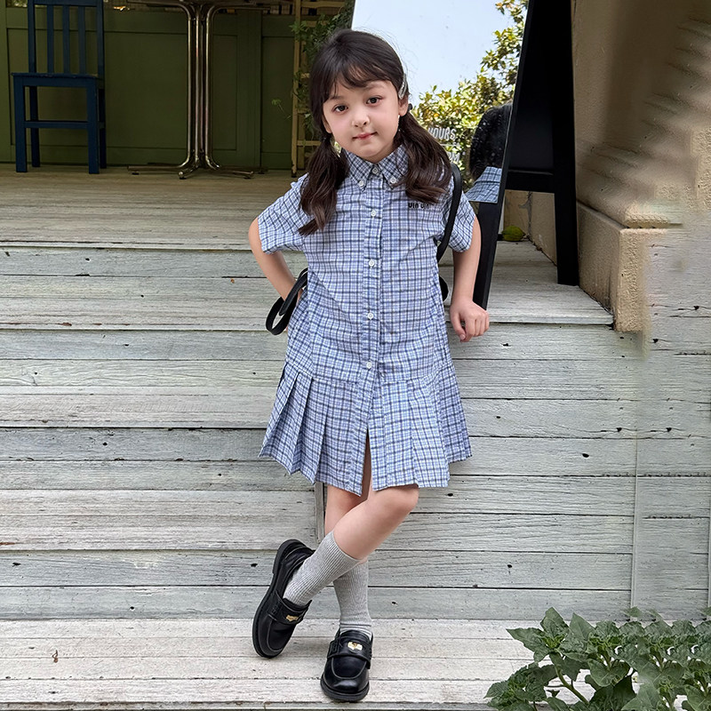 清仓 女童设计感小众学院风格子衬衫裙夏季儿童韩版休闲A字短袖连