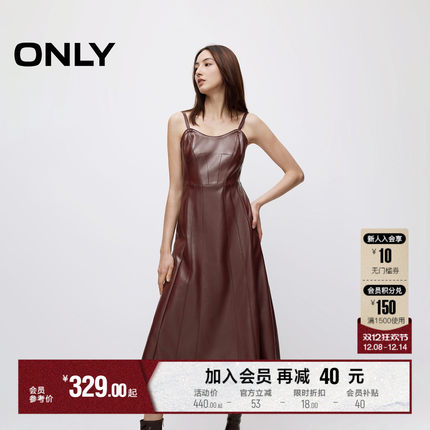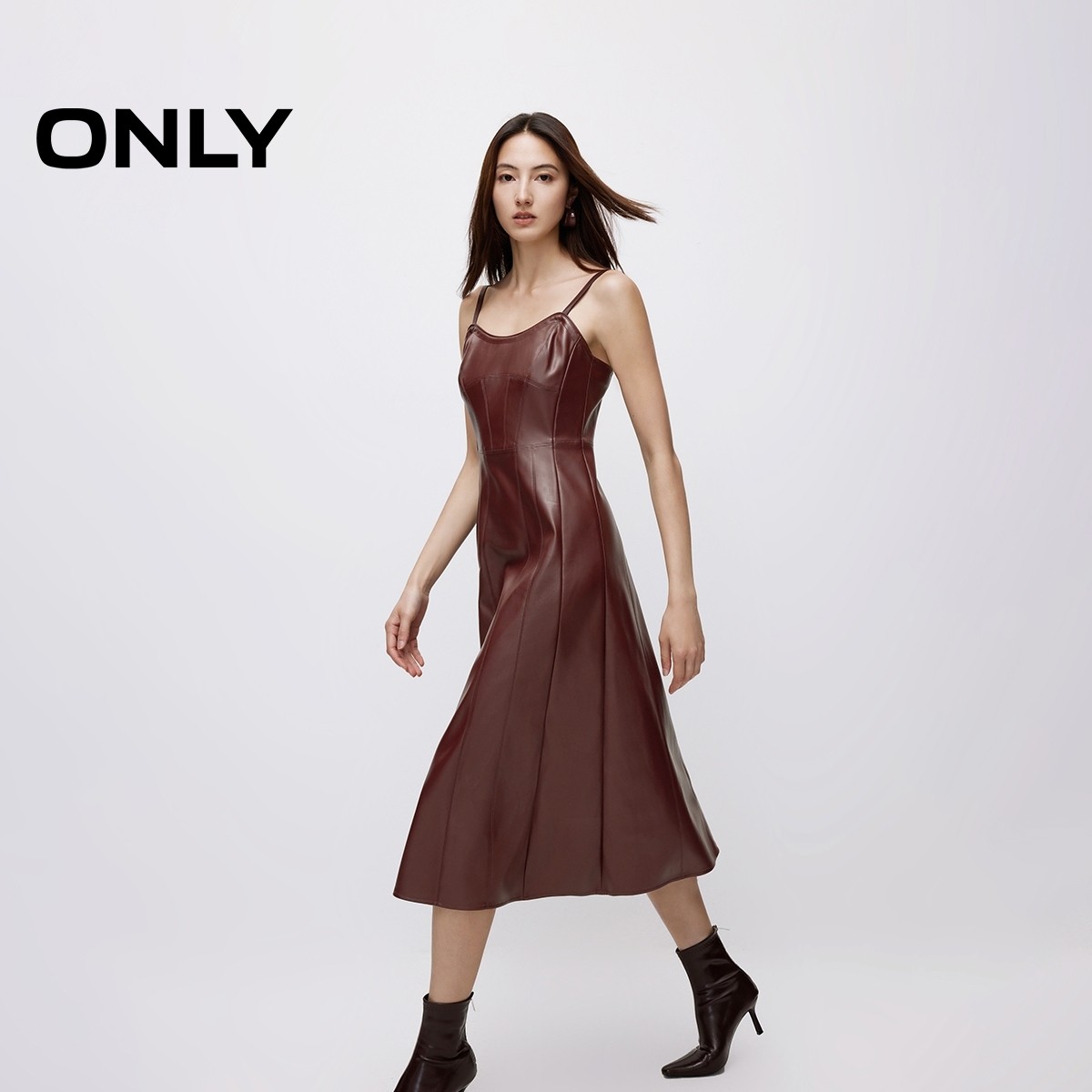 ONLY秋季优雅高级感纯色PU显瘦吊带连衣裙女|12437Y008