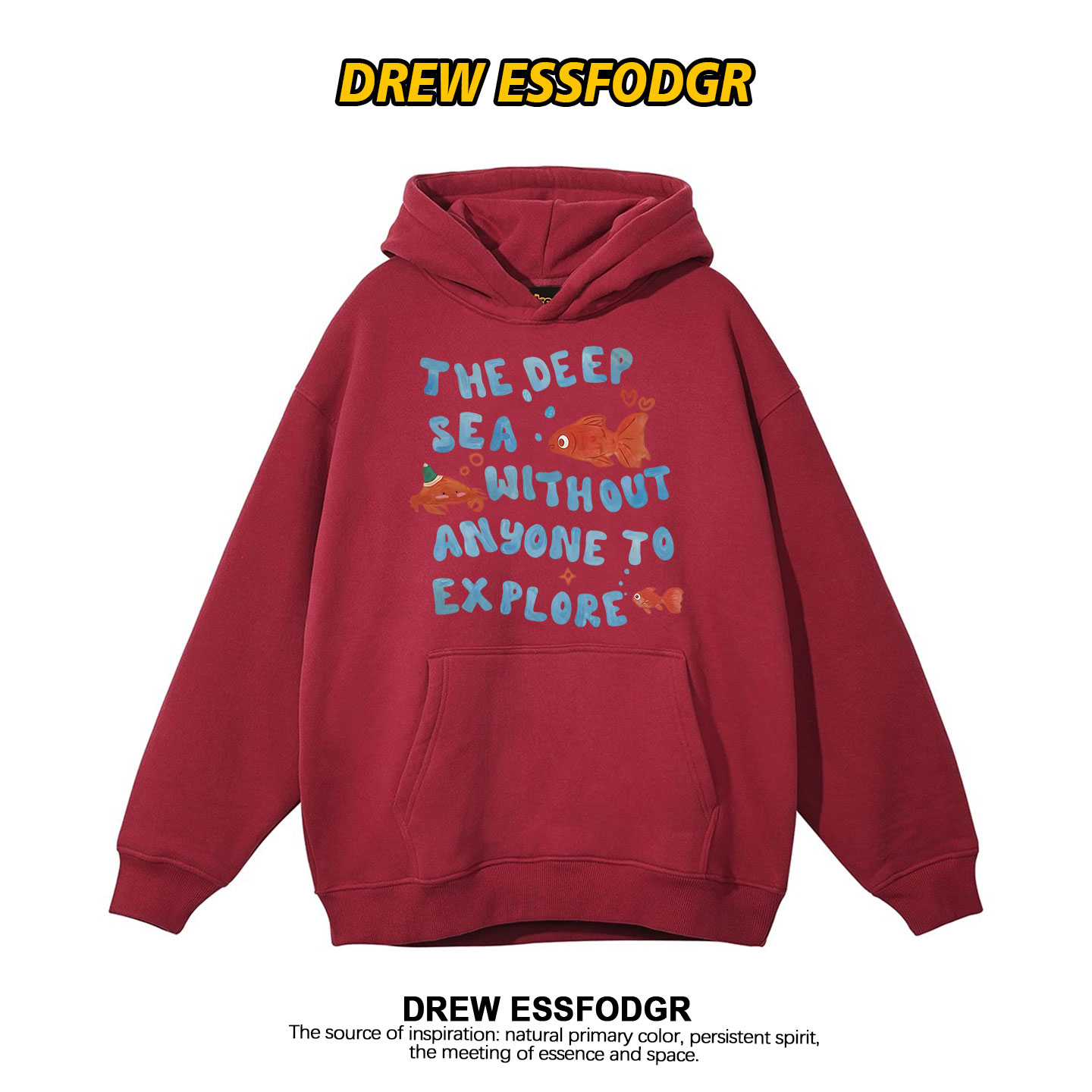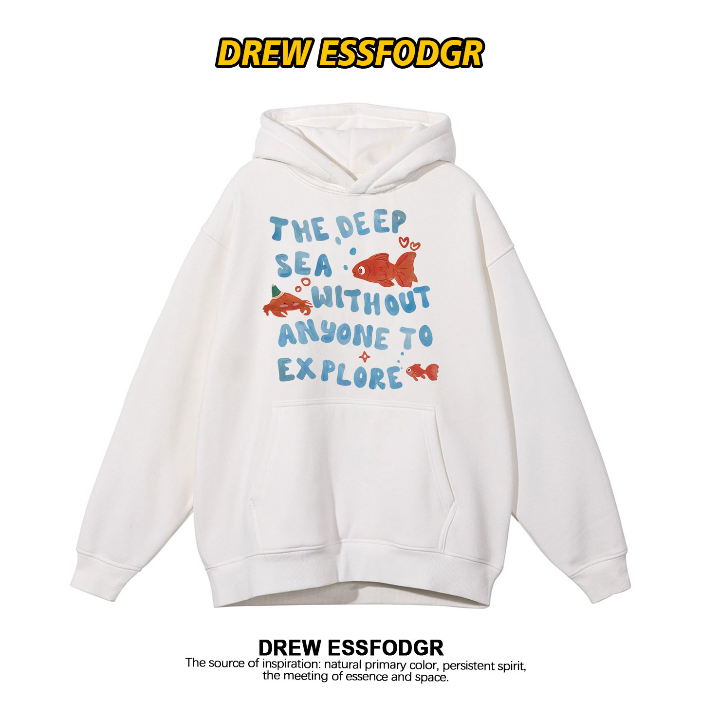 drew美式潮牌字母卡通连帽卫衣男女情侣原宿风复古宽松秋冬外套潮