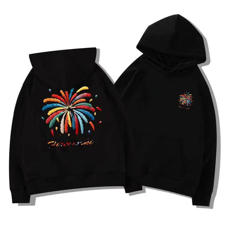 银狐绒韩版潮流彩色烟花印花连帽卫衣男女秋冬季学生宽松百搭上衣