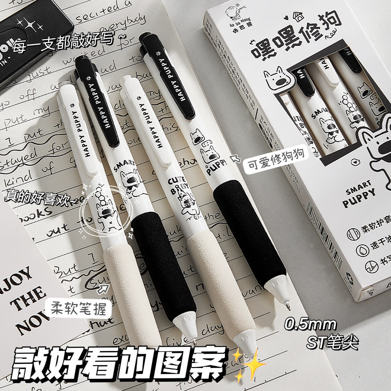 咔巴能静音按动中性笔ins高颜值中国风0.5速干学生考试刷题笔ST头