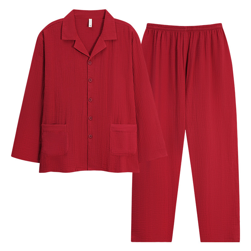 都市丽人纯棉红色睡衣结婚新婚情侣套装男女双层棉纱本命年家居服