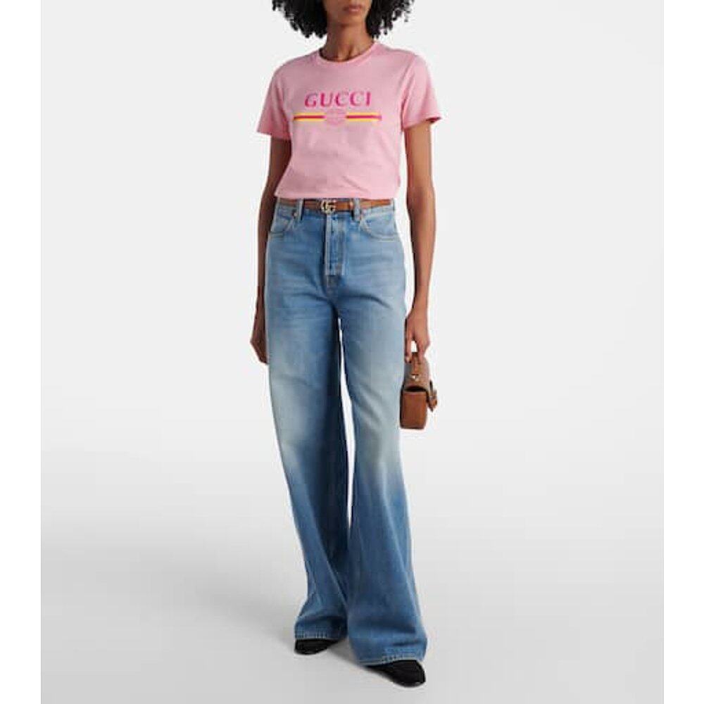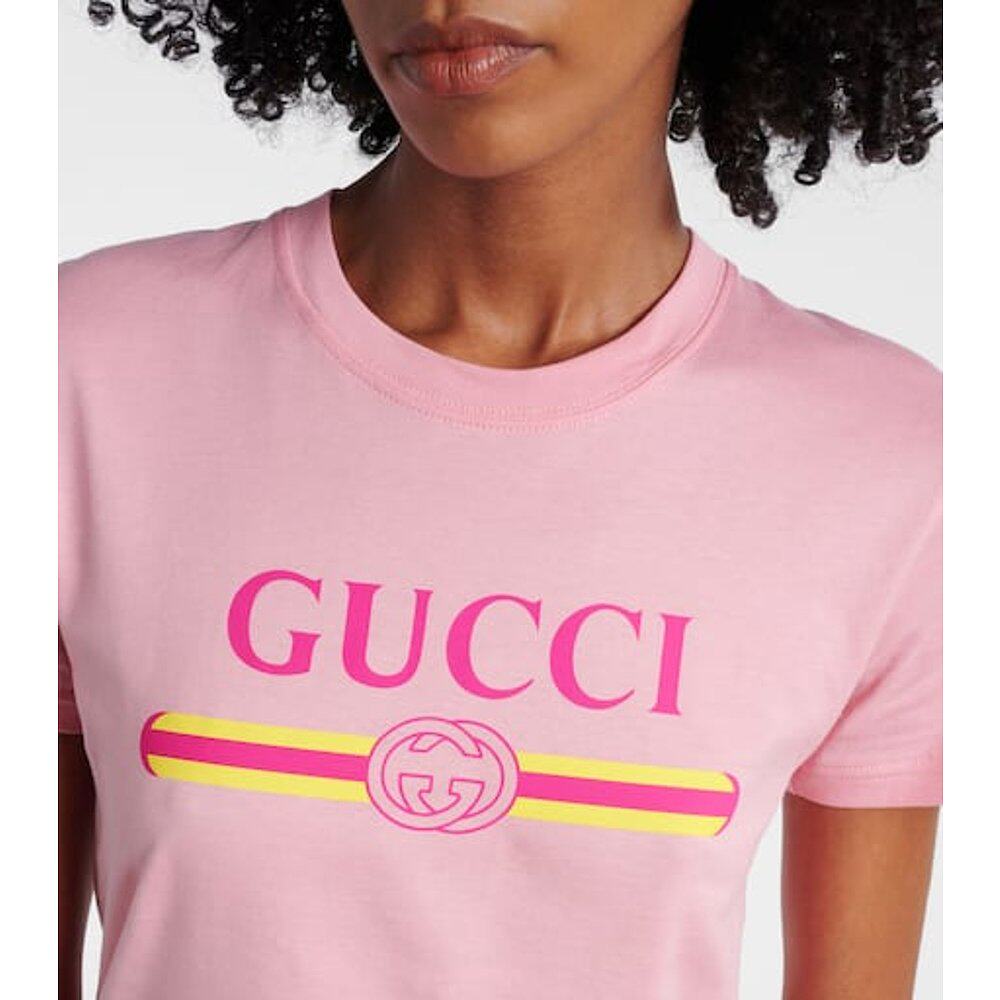 潮奢 Gucci 古驰 女士 印花棉质针织T恤 pink粉色 舒适时尚
