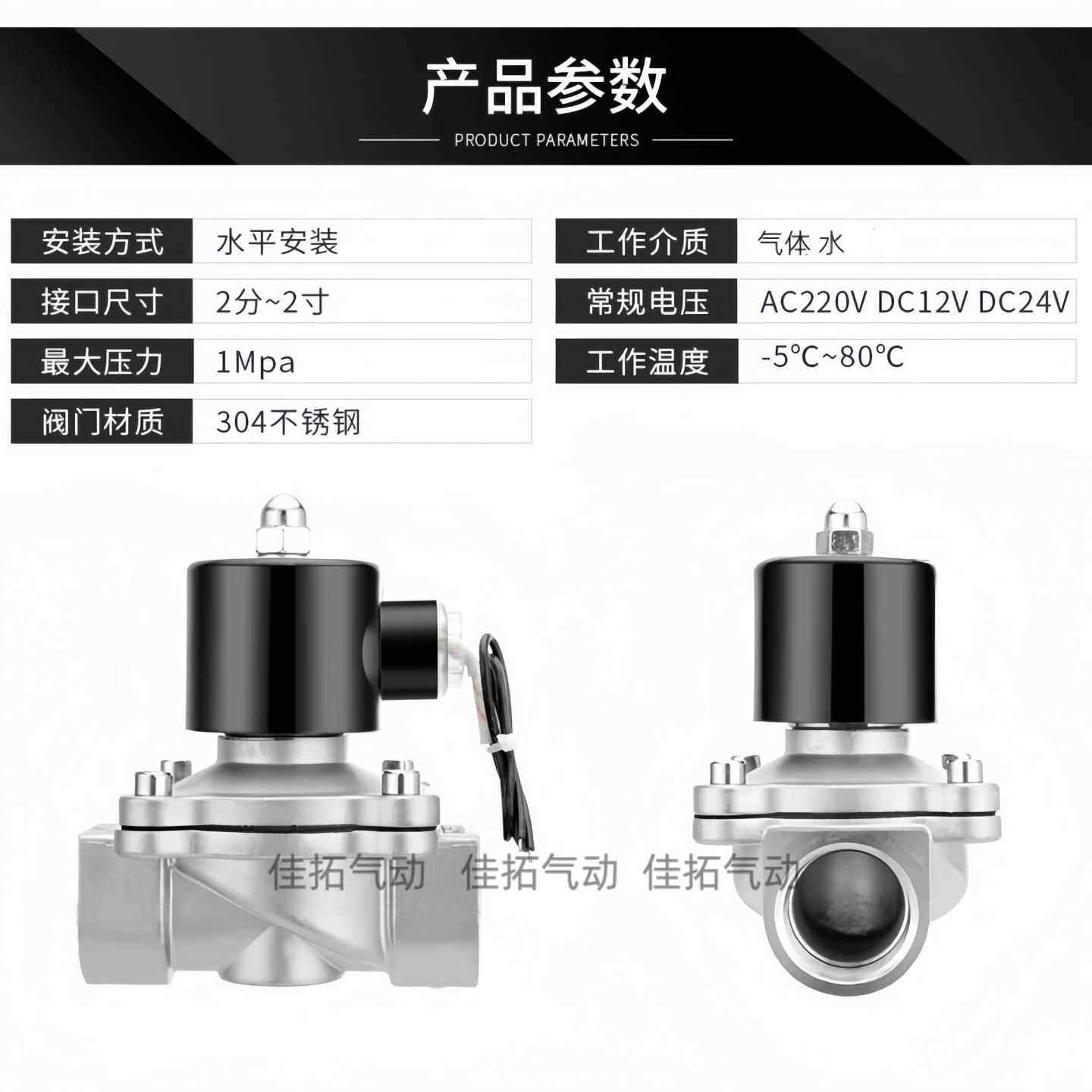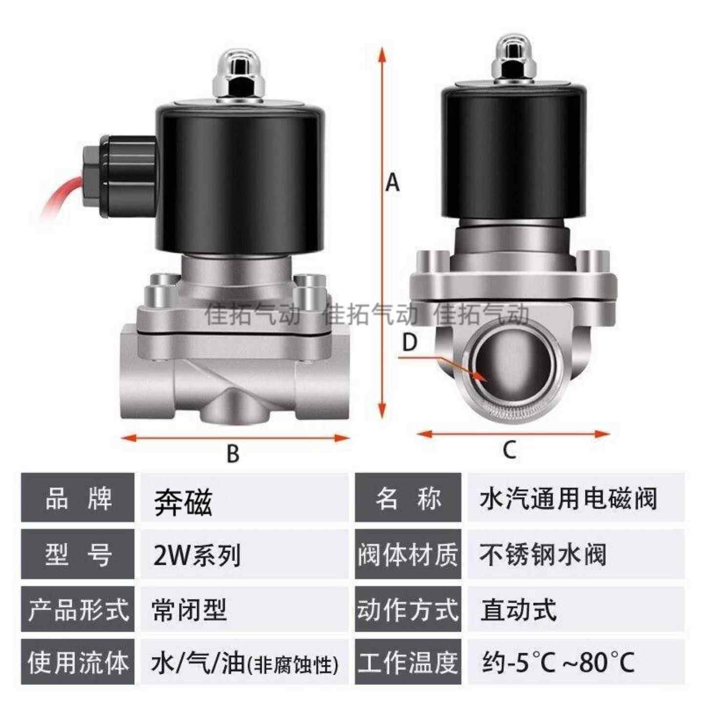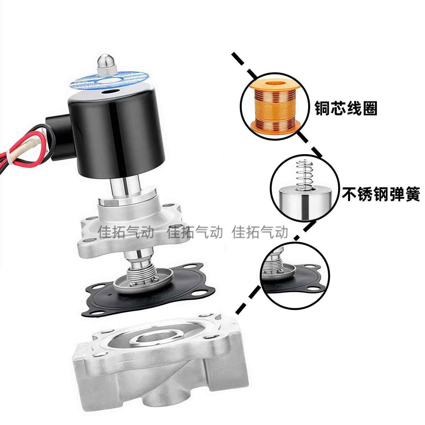 奔磁304不锈钢电磁开关阀常闭2w4分气阀220v24v6分dn15dn25水阀