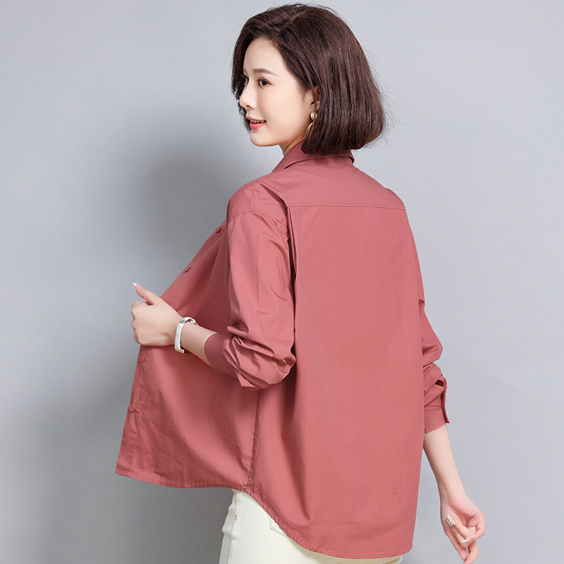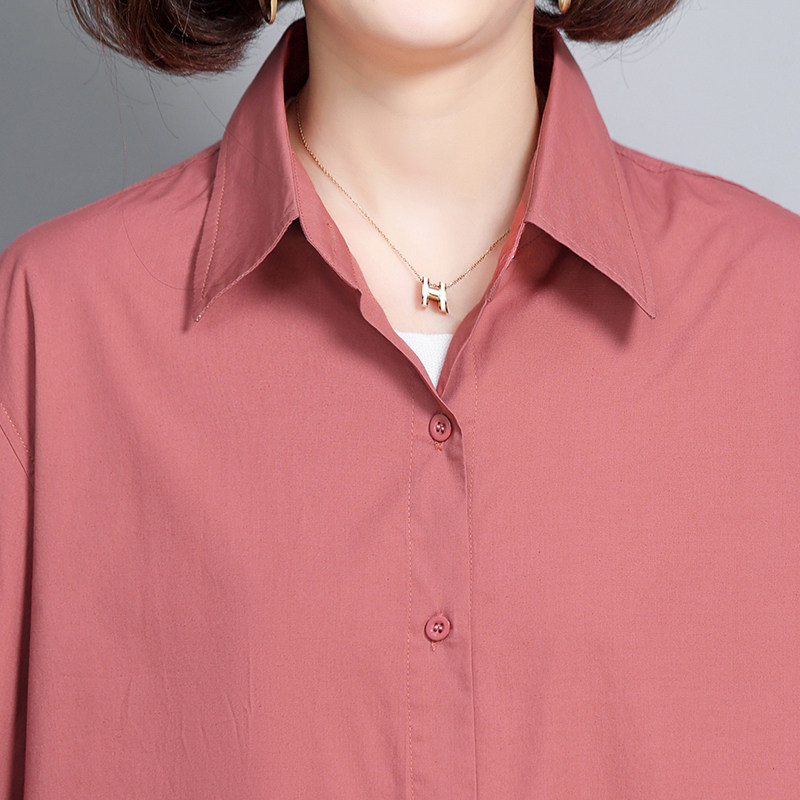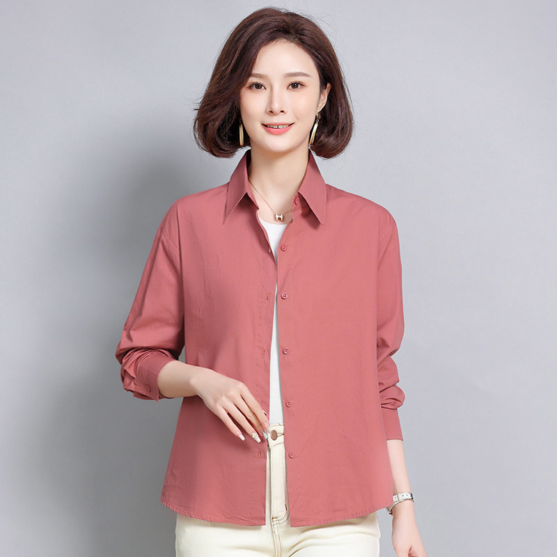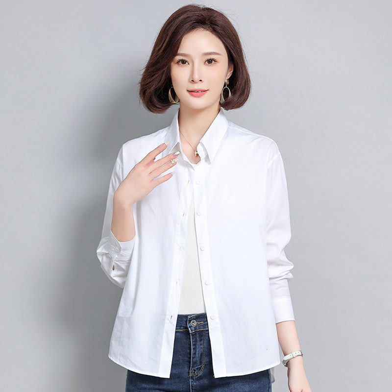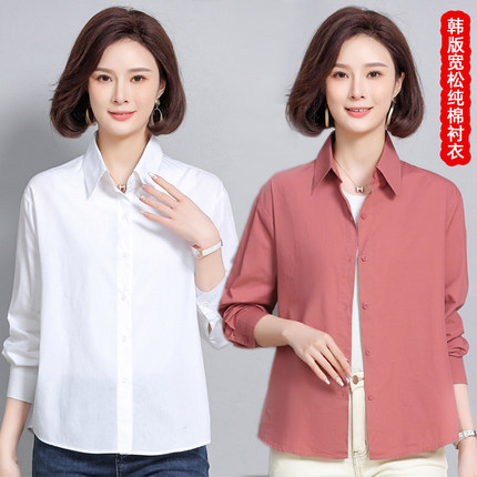 纯棉白色衬衫女2023年春装新款韩版宽松中老年衬衣休闲打底上衣