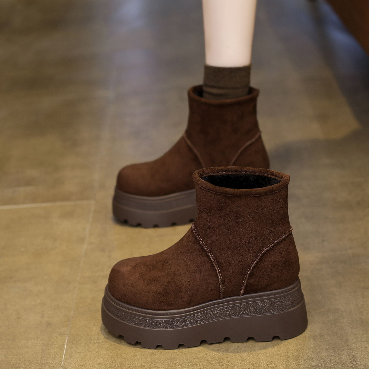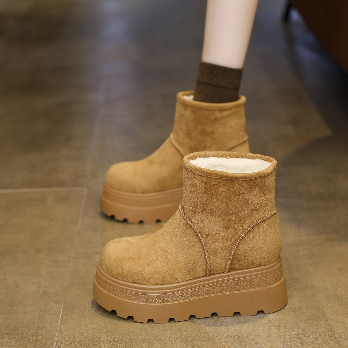厚底内增高雪地靴女2025新款冬季加绒保暖短筒防滑东北大棉鞋小码