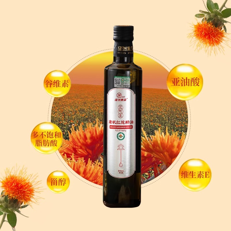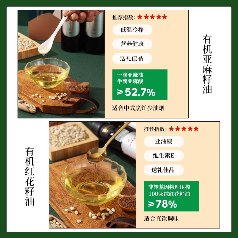 【新疆特产】绿洲果实有机红花籽油+亚麻籽油礼盒物理压榨食用油