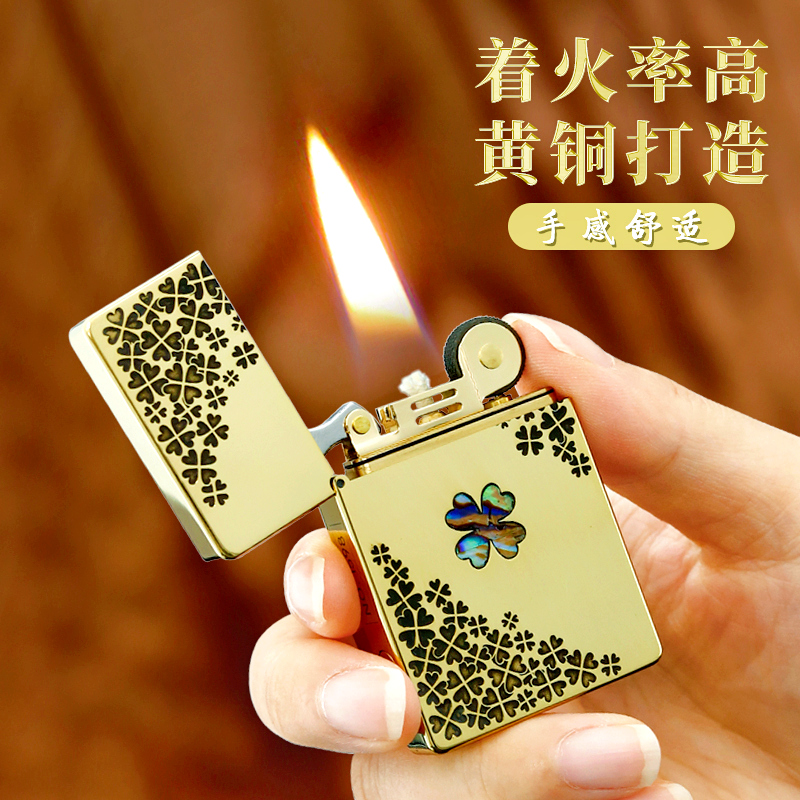 佐罗幸运四叶草煤油打火机ZL8彩贝黄铜时尚限量生日礼物送男友