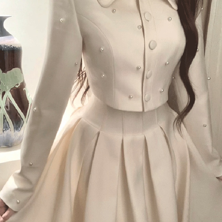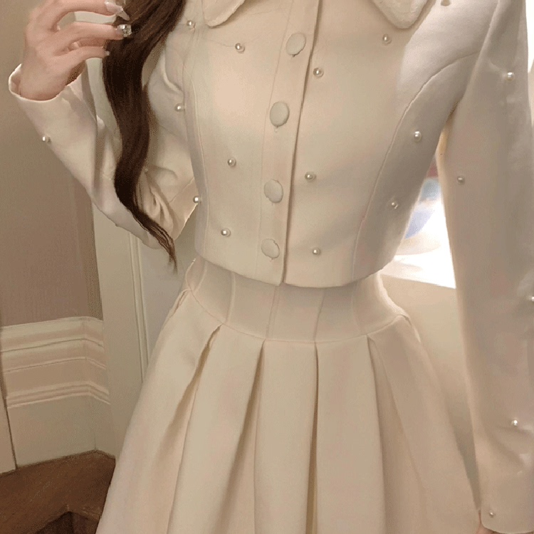 小香风套装女秋冬高级感名媛miu系重工珍珠短款外套半身裙两件套