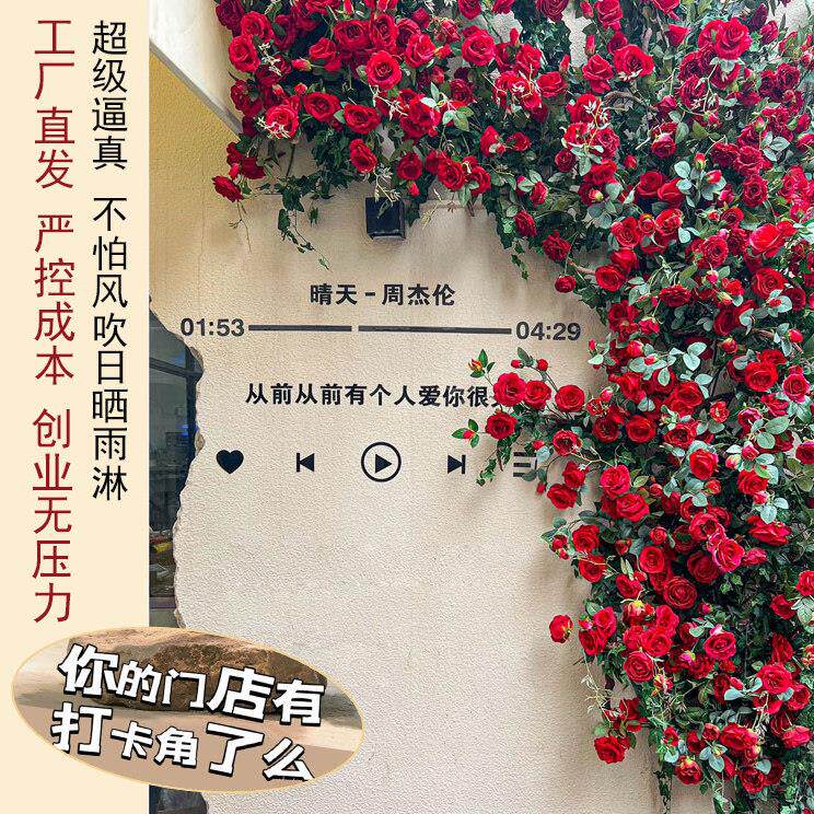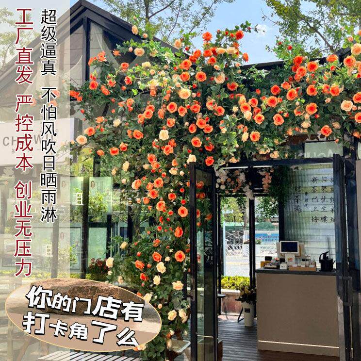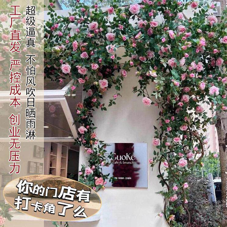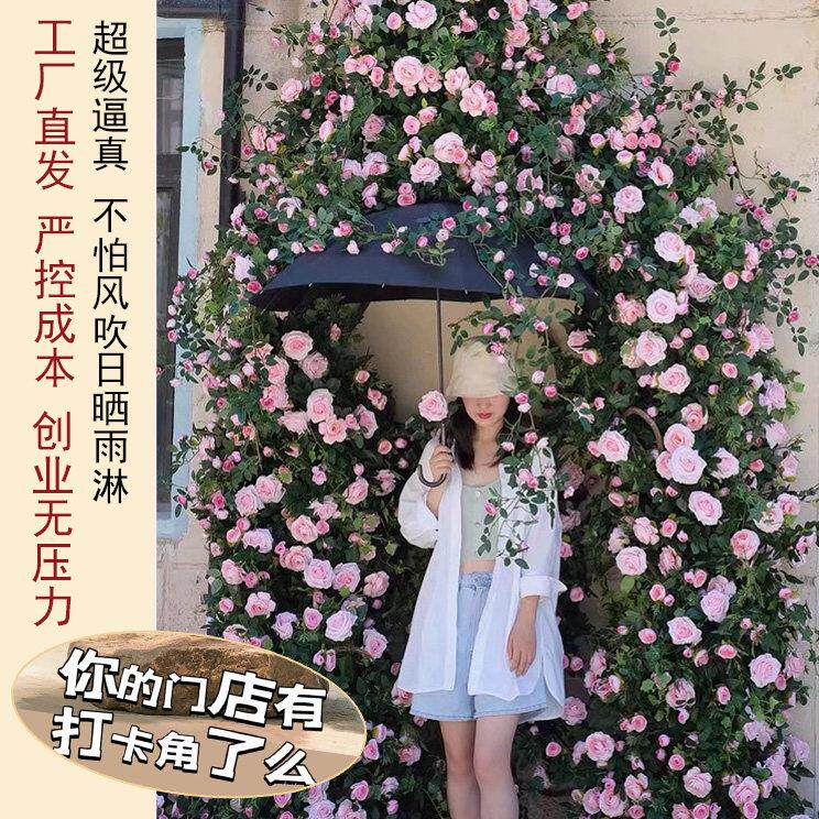 彷真玫瑰花网红花墙瀑布墙壁假花空调管道装饰花藤条遮挡门头藤蔓