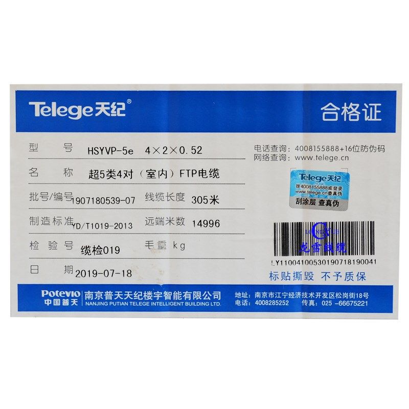 普天天纪超五类/六类屏蔽网线HSYVP-5e 420.52屏蔽FTP 305米