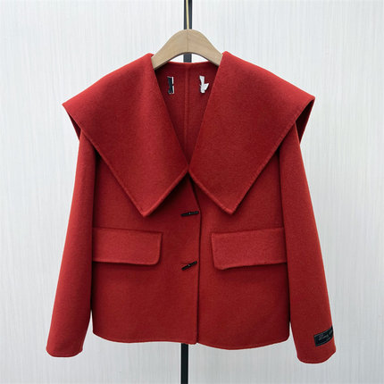 S●2025冬季新品 双面呢大衣女气质短款宽松绵羊毛呢子外套622