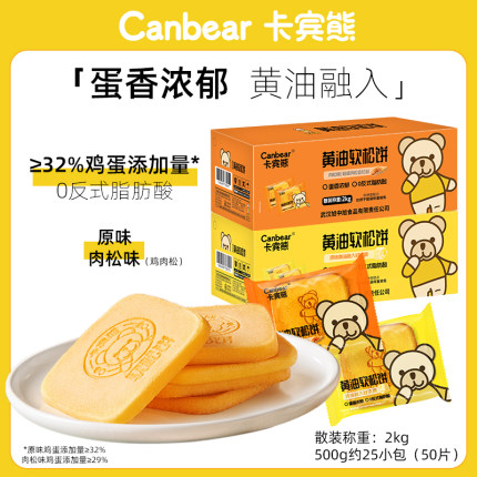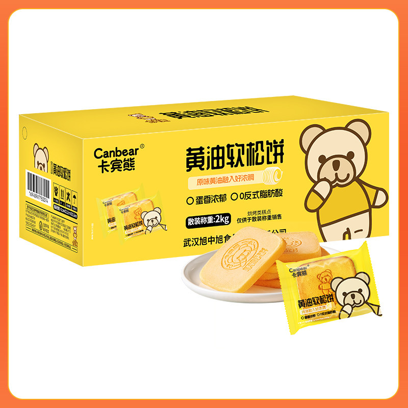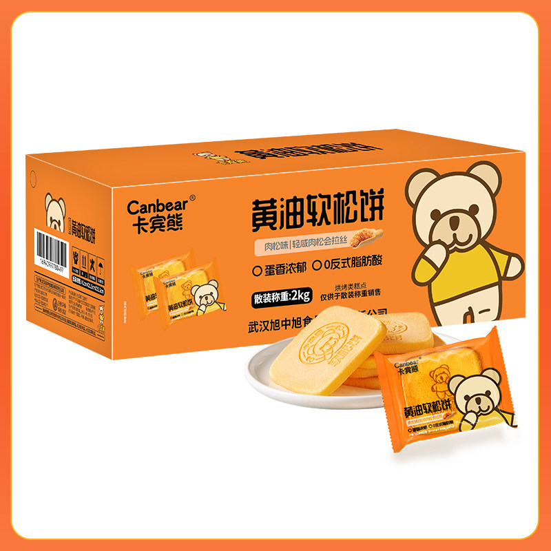 卡宾熊2kg箱装黄油软松饼肉松味年货送礼黄油软松饼公司年会福利