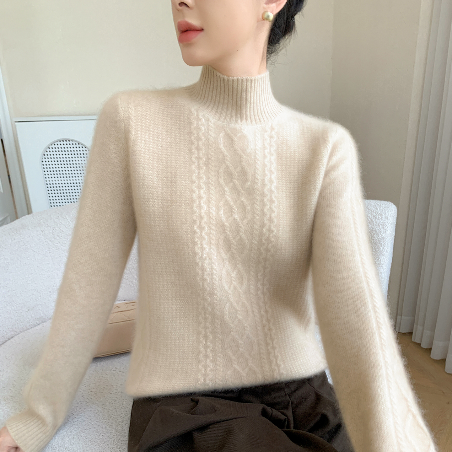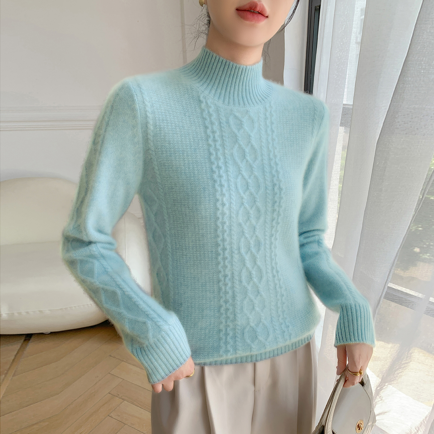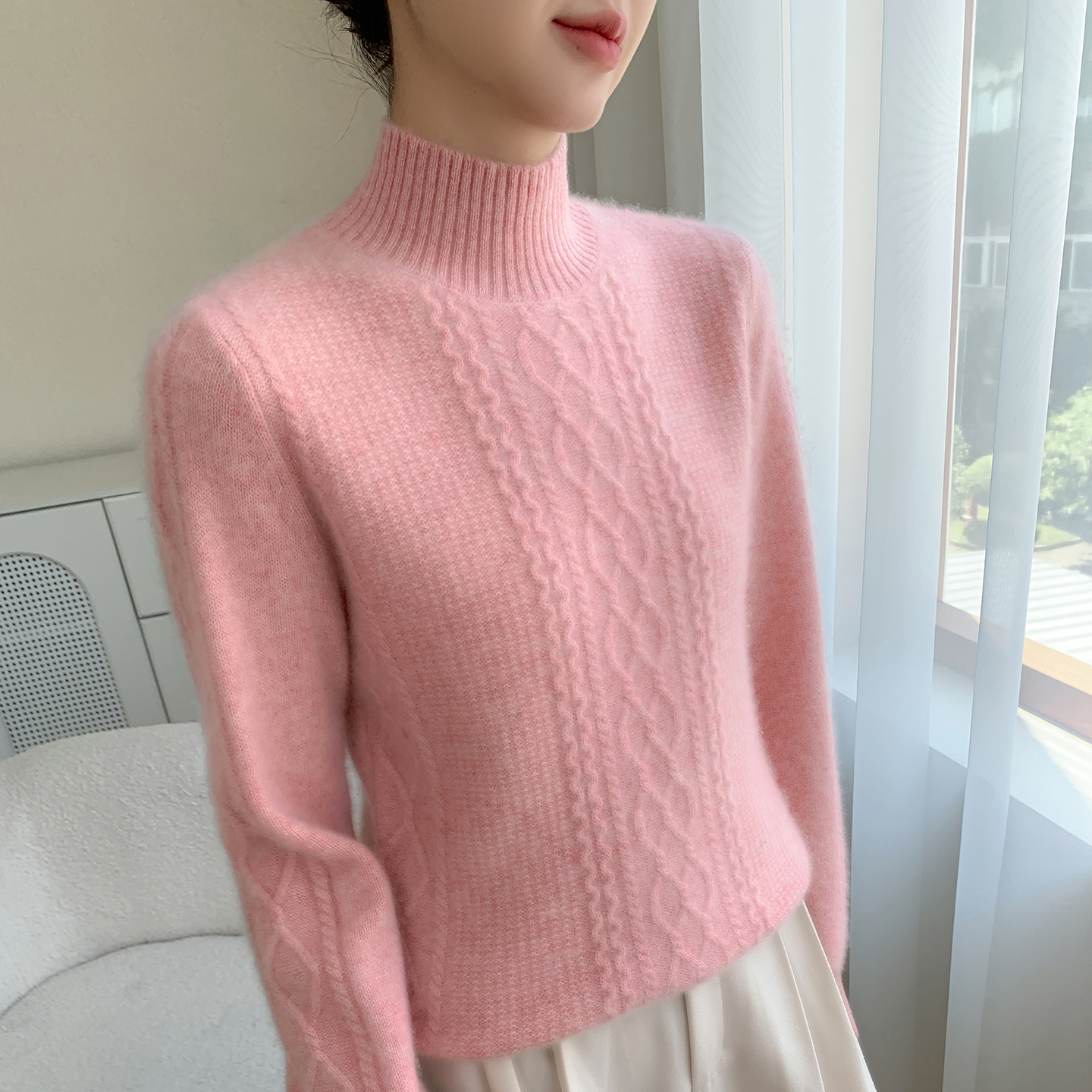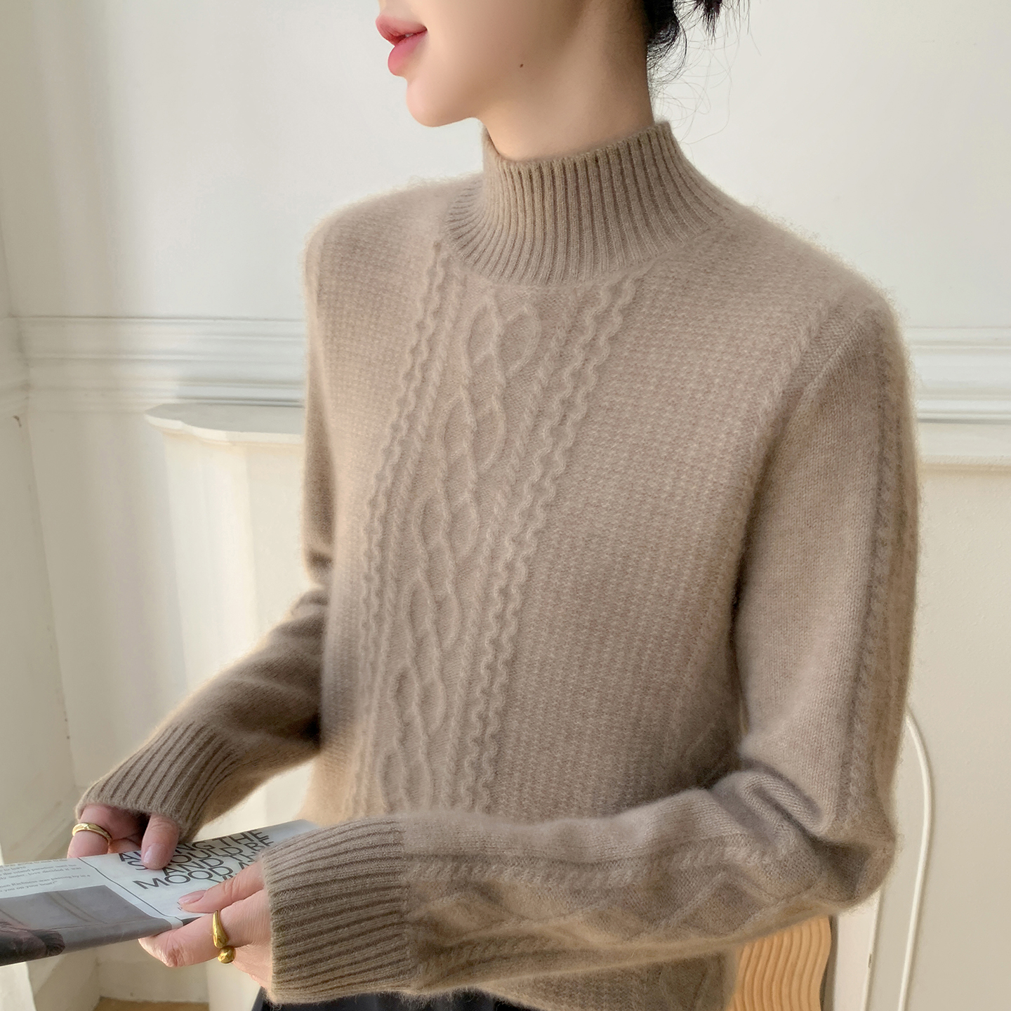 25秋冬新款加厚扭花半高领山羊绒衫女软糯宽松显瘦毛衣内搭针织衫