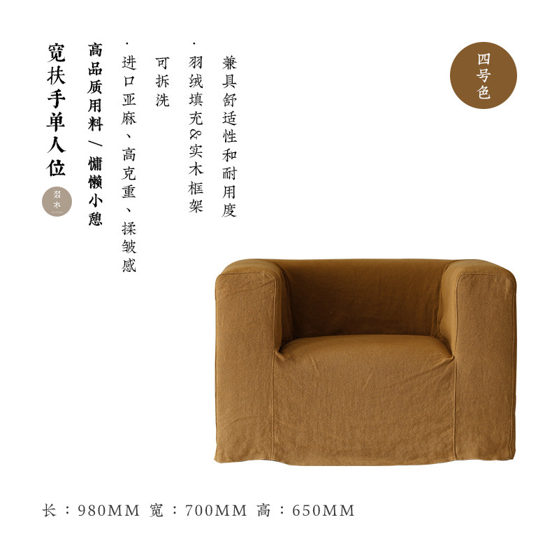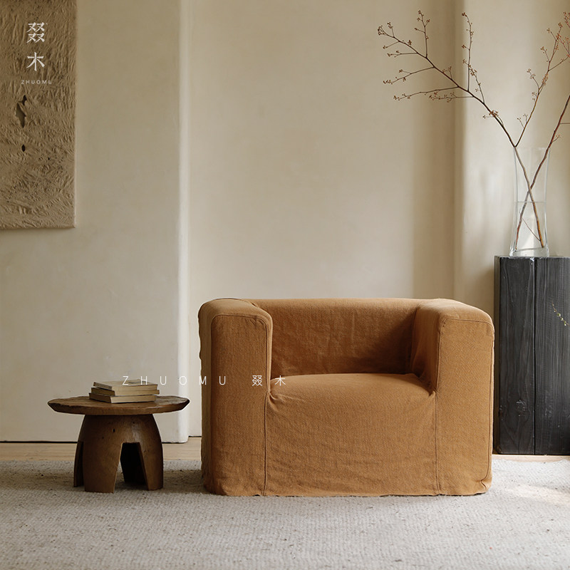 叕木 |单人位沙发日式侘寂风格亚麻布艺沙发可拆洗北欧小户型民宿
