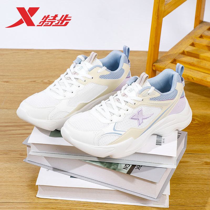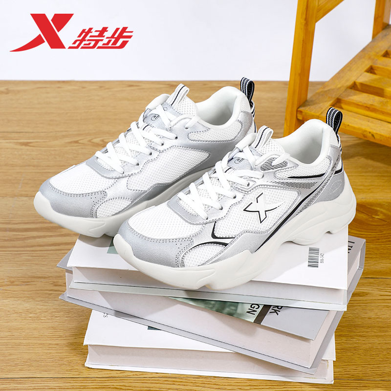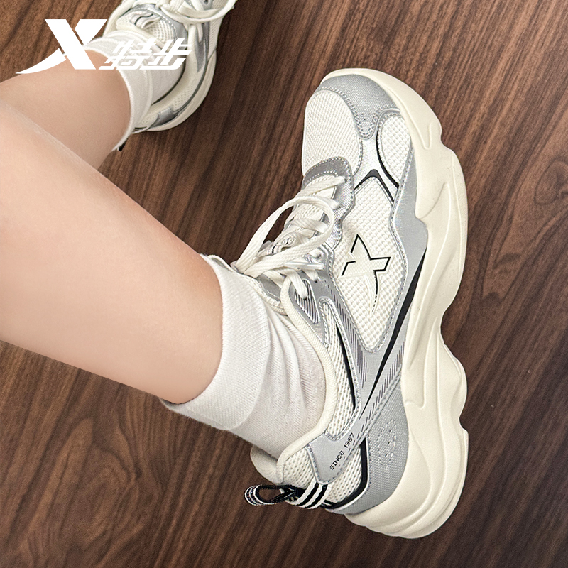 特步女鞋厚底老爹鞋女2025秋季网面透气休闲鞋官方旗舰正品运动鞋