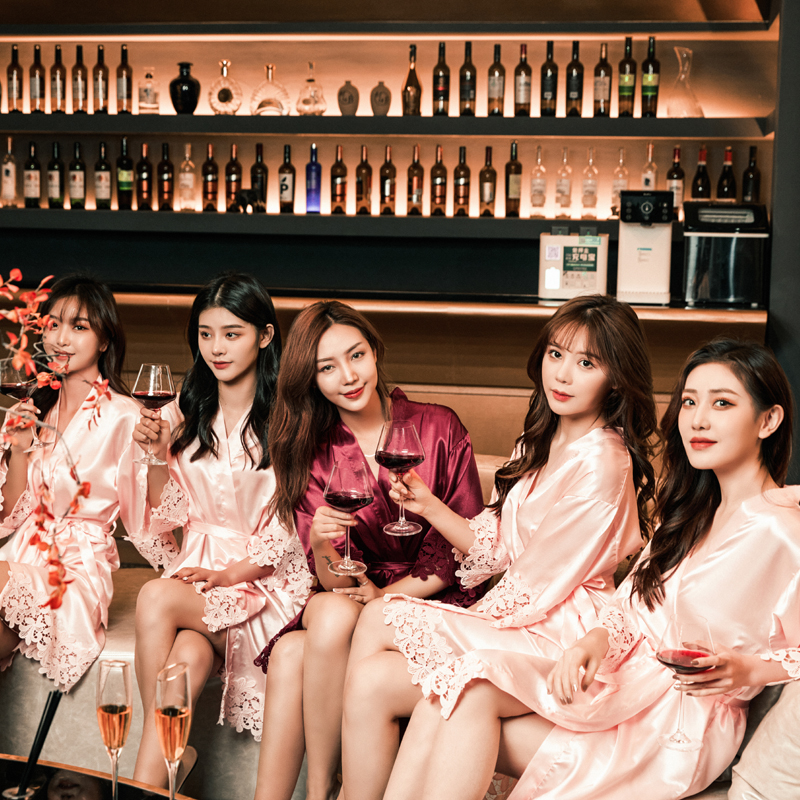 新娘伴娘丝绸女蕾丝婚礼晨袍性感