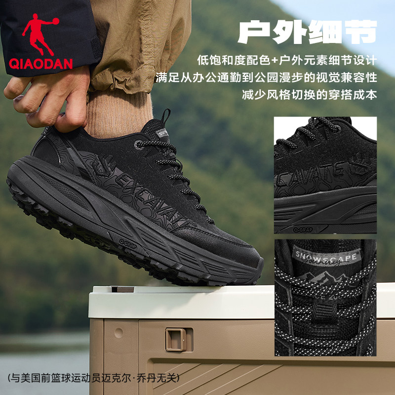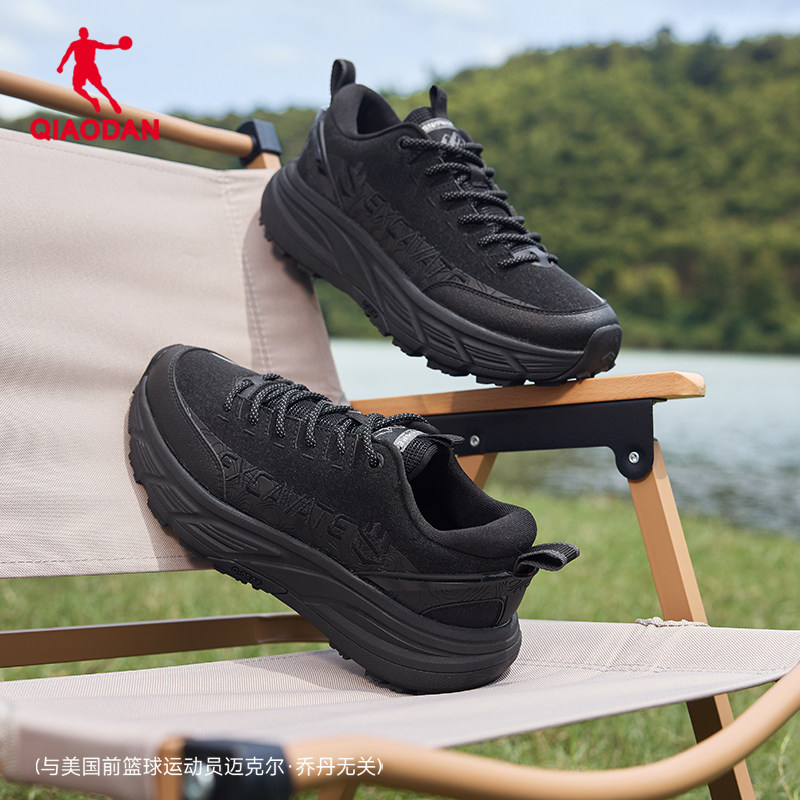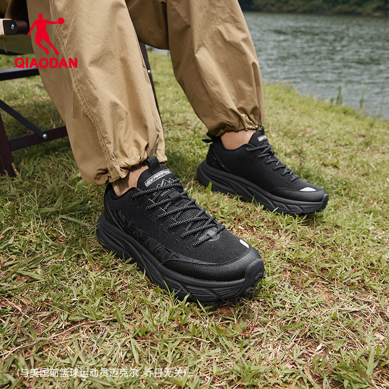 乔丹户外防水登山鞋男2025冬新款革面防滑徒步爸爸轻便黑色运动鞋