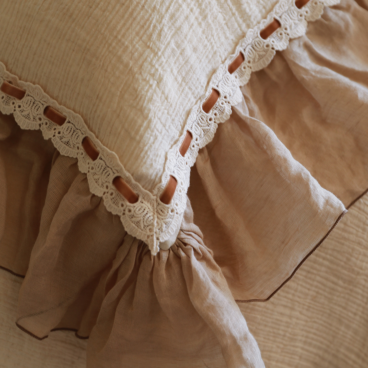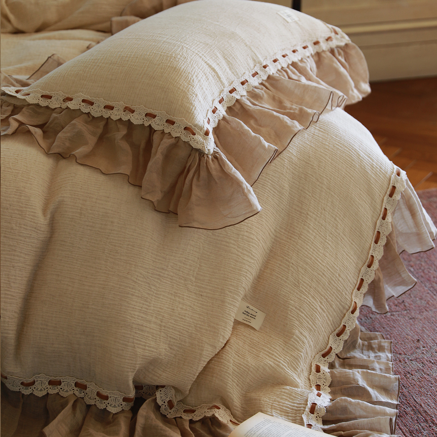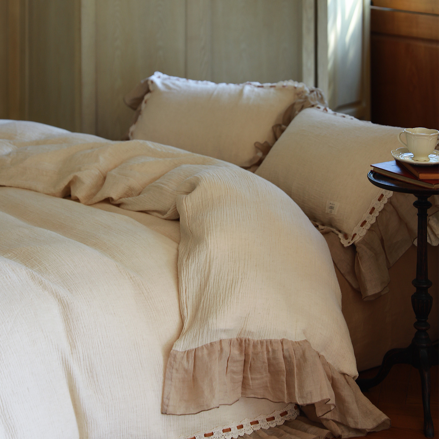 25新款中古法式花边棉麻双层纱四件套 被套床上用品床单