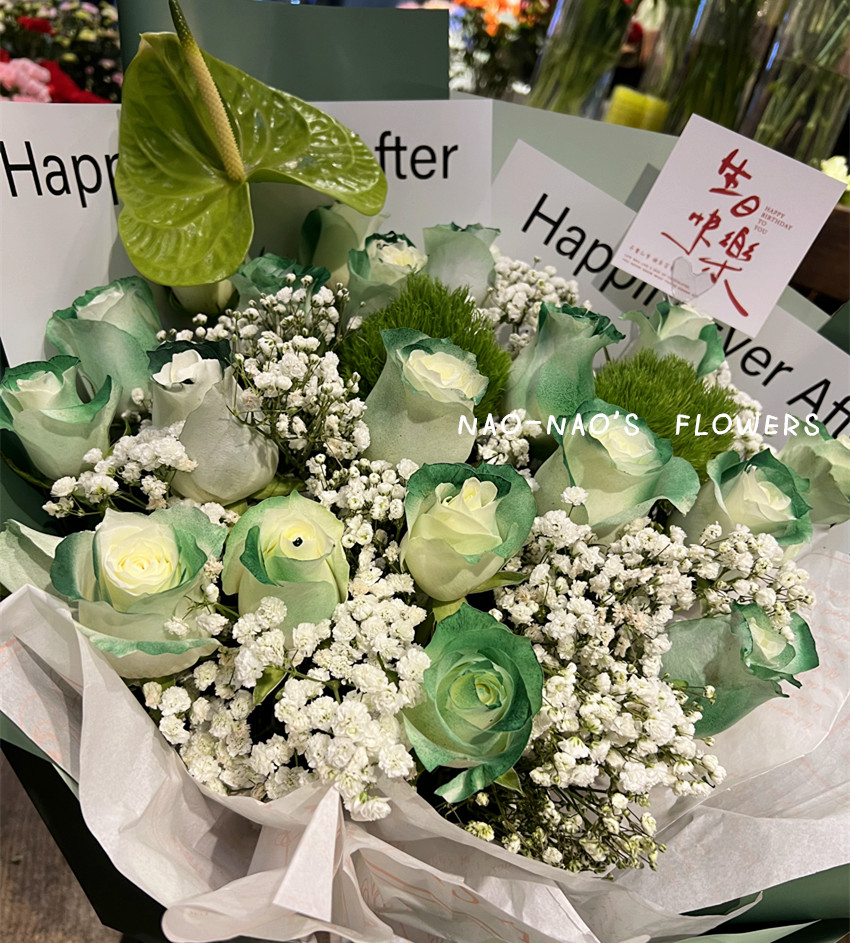 女朋友生日苏格兰绿玫瑰花束丹东同城鲜花速递东港凤城宽甸订花店