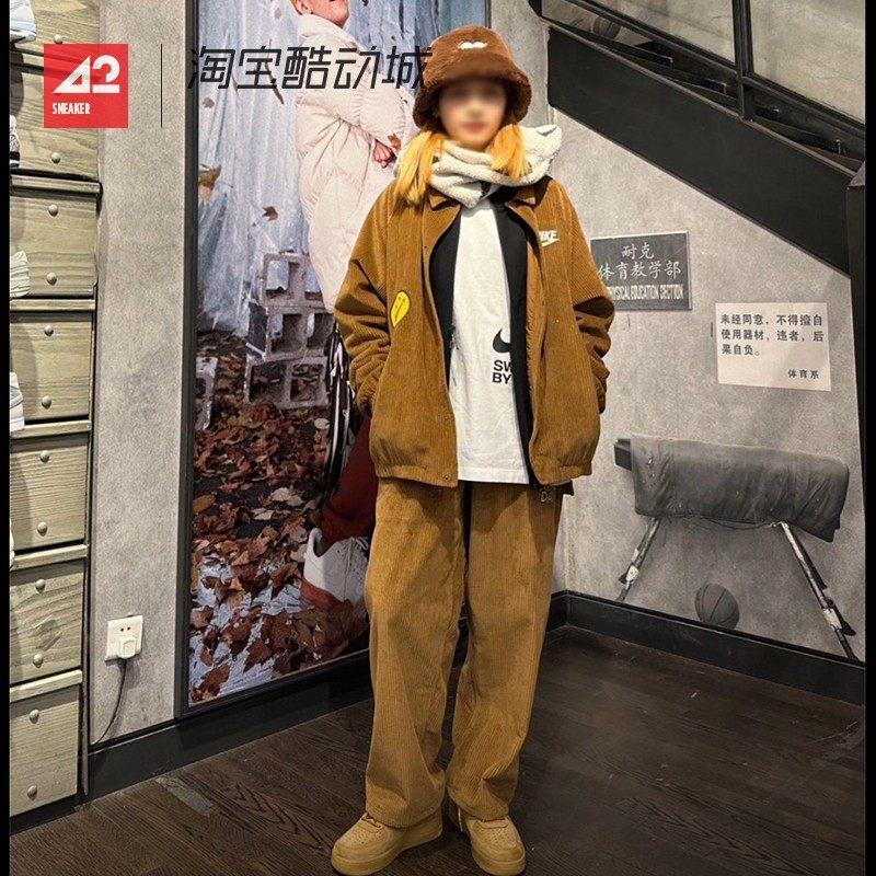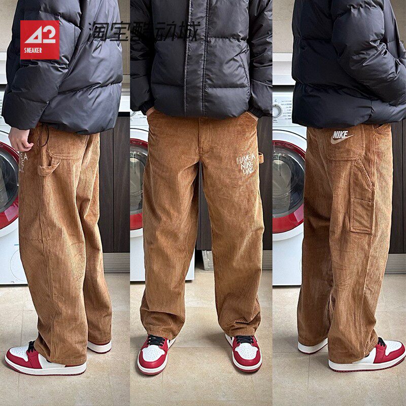 42运动家 Nike耐克灯芯绒刺绣直筒休闲长裤 情侣款棕色HF0354-281