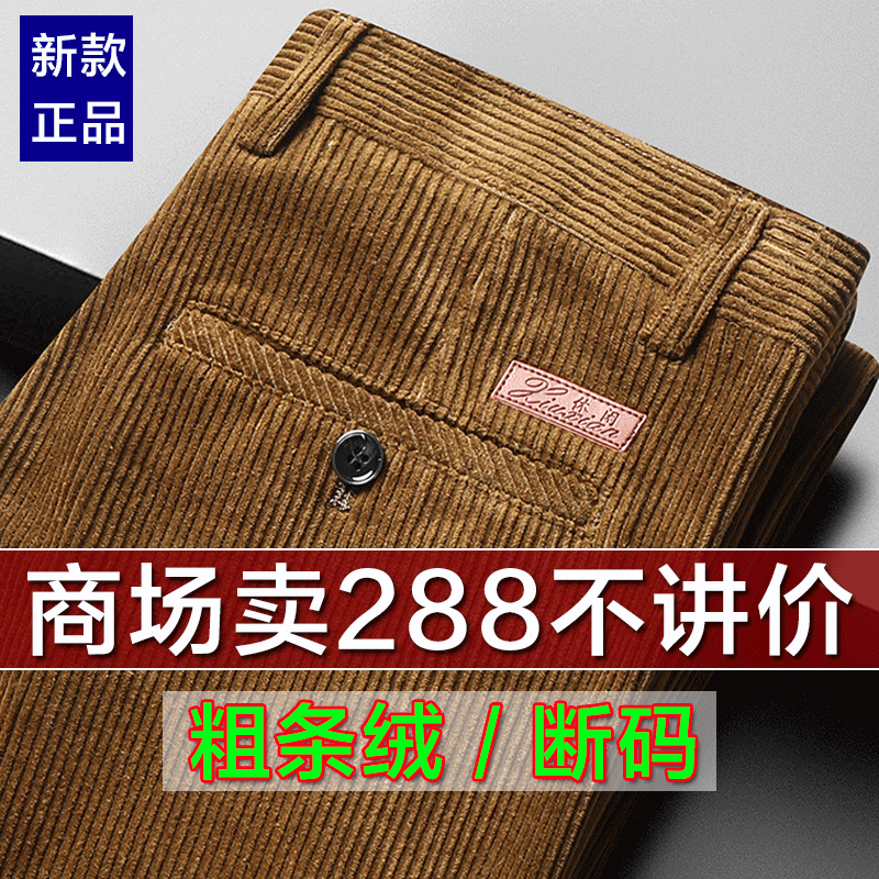灯芯绒裤子男秋冬季新款加绒加厚