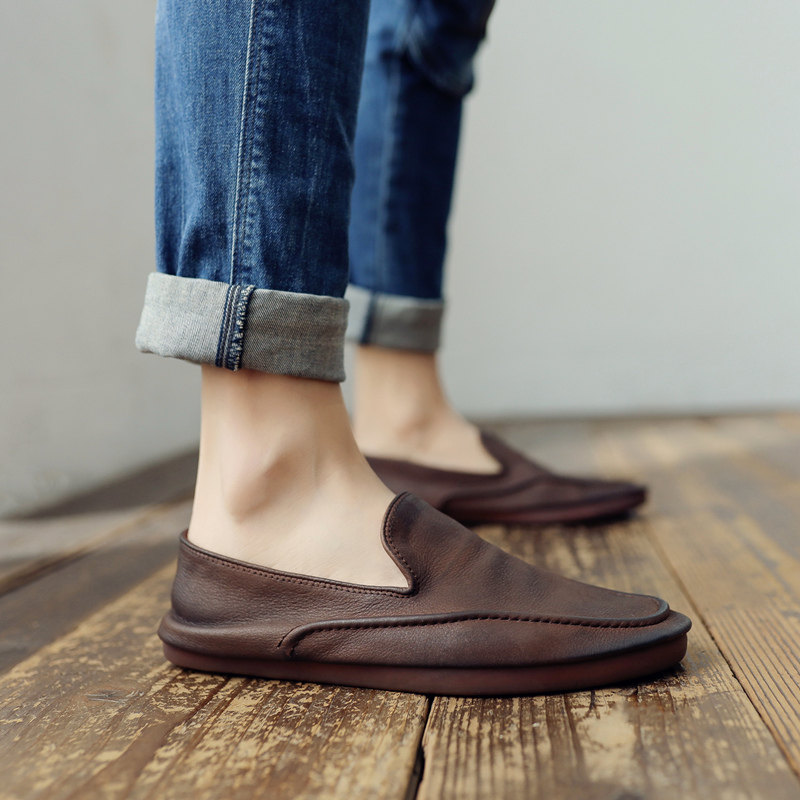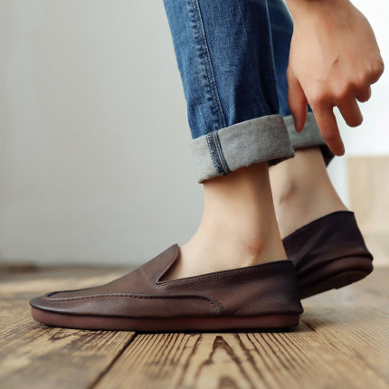 懒人鞋真皮商务休闲一脚蹬男鞋透气百搭软底驾车鞋秋季豆豆鞋男士