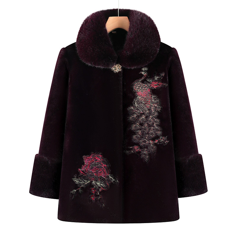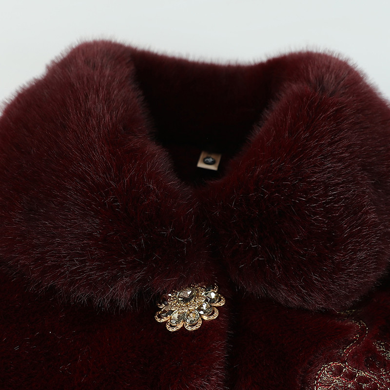 洋气奶奶冬装毛呢外套加绒保暖老年人妈妈水貂绒衣服老太太棉袄厚