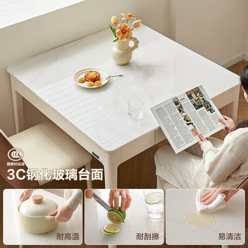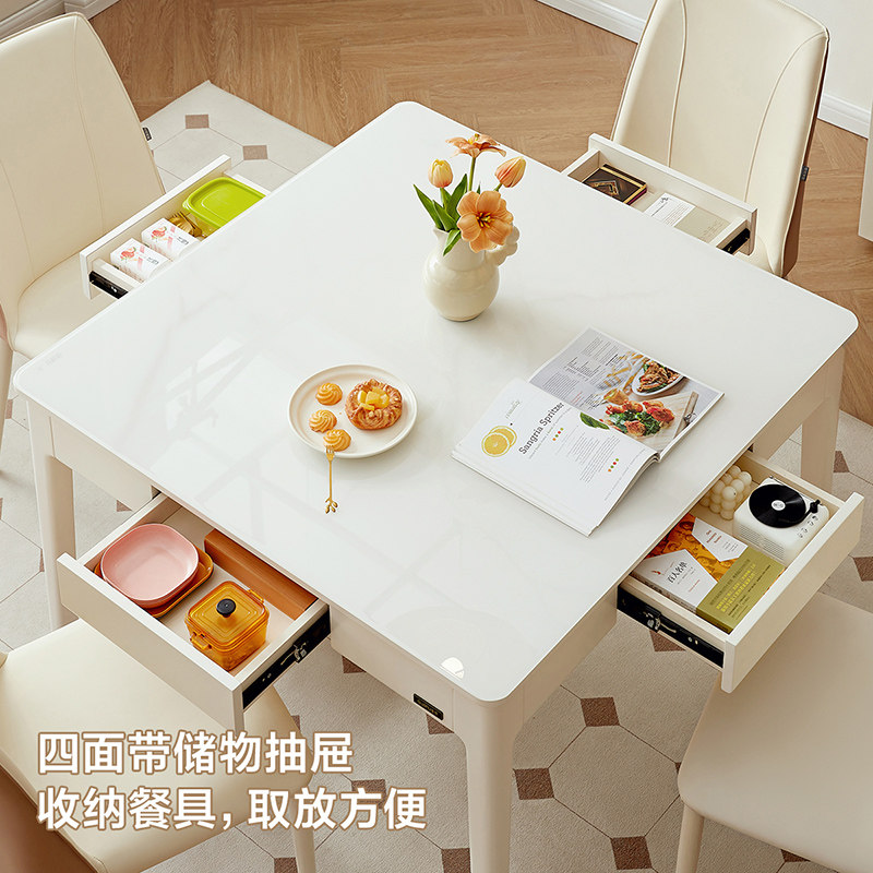 全友家居2025新款现代奶油风餐桌椅组合客厅家用小户型实木脚方桌