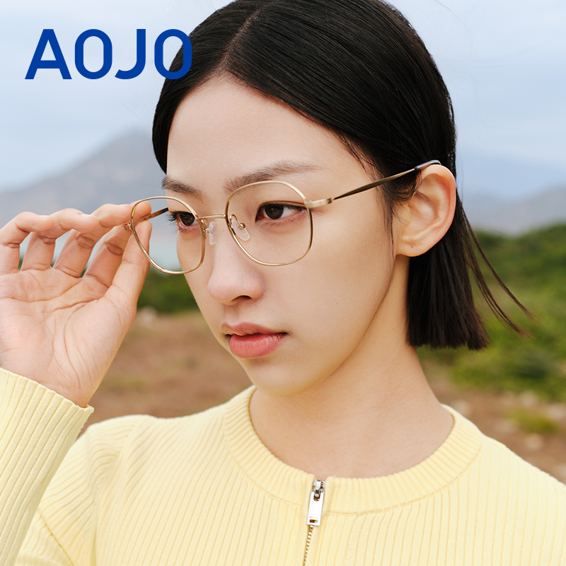 AOJO澳镜素颜大框眼镜男女款钛合金镜腿可配近视眼镜AJ501FJ704