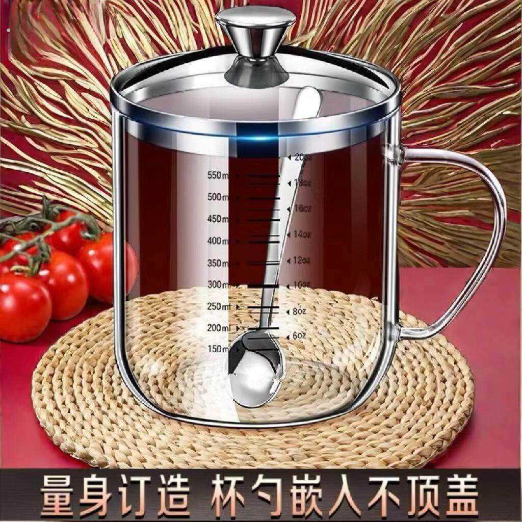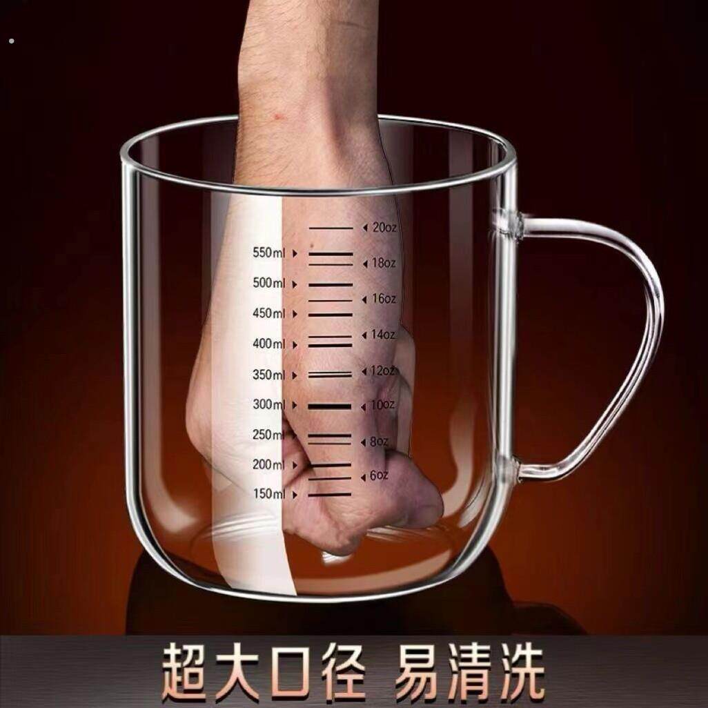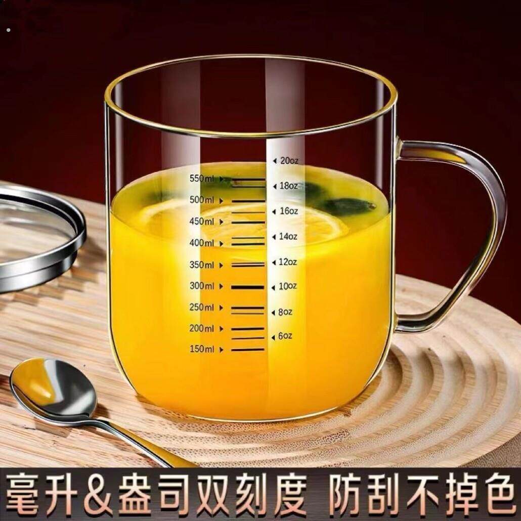 双刻度杯子高硼硅玻璃茶杯计量杯可加热耐高温带盖子水杯